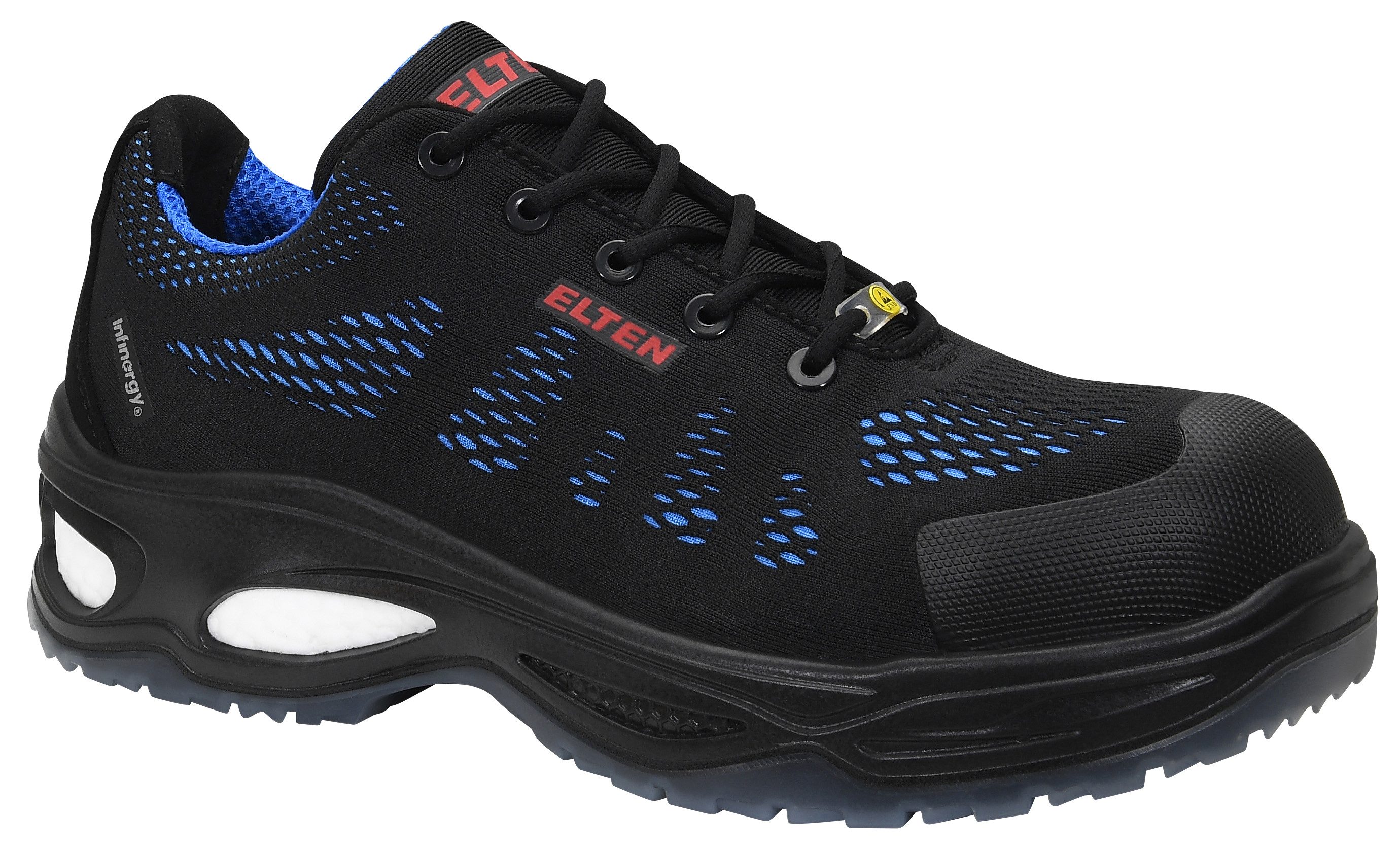 ELTEN - GEMACHT AUS LEIDENSCHAFT - 1910 in Uedem am Niederrhein von Johann van Elten gegründet, brachte seine Vision den Durchbruch für den modernen Sicherheitsschuh, wie wir ihn heute kennen: die revolutionäre Erfindung des ersten ELTEN Arbeitsschuhes aus Leder statt wie damals üblich aus Holz. Heute gehört ELTEN zu den führenden Herstellern von hochwertigen Sicherheits- und Berufsschuhen in Europa mit einer Jahresproduktion von über 3 Mio. Paar, produziert in Uedem am Niederrhein. Aus dieser Tradition heraus stehen für uns der Mensch, sein Schutz und seine Sicherheit im Mittelpunkt unserer Arbeit. === ELTEN Sicherheitshalbschuh, LOGAN blue Low ESD S1, 729425, ELTEN WELLMAXX, Meshmaterial/Textilmaterial, Atmungsaktives Textilfutter, Gepolsterte Lasche, Ganzflächige Einlegesohle ESD PRO black, ESD-fähige Softvlies-Brandsohle mit eingearbeiteten Aussparungen, TPU/PU Sohle WELLMAXX, EN ISO 20345:2022 S1 FO/SR, Form A