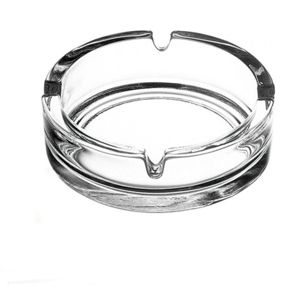 3er Aschenbecher aus Glas Ascher Rund staplebar Material: Glas Größe(LxBxH): ca. 10x5x10x5x3,5cm Farbe: Transparent Stapelbar Mit jeweils 4 Kerben zur Ablage von Zigaretten Dickwandiges Glas 1cm