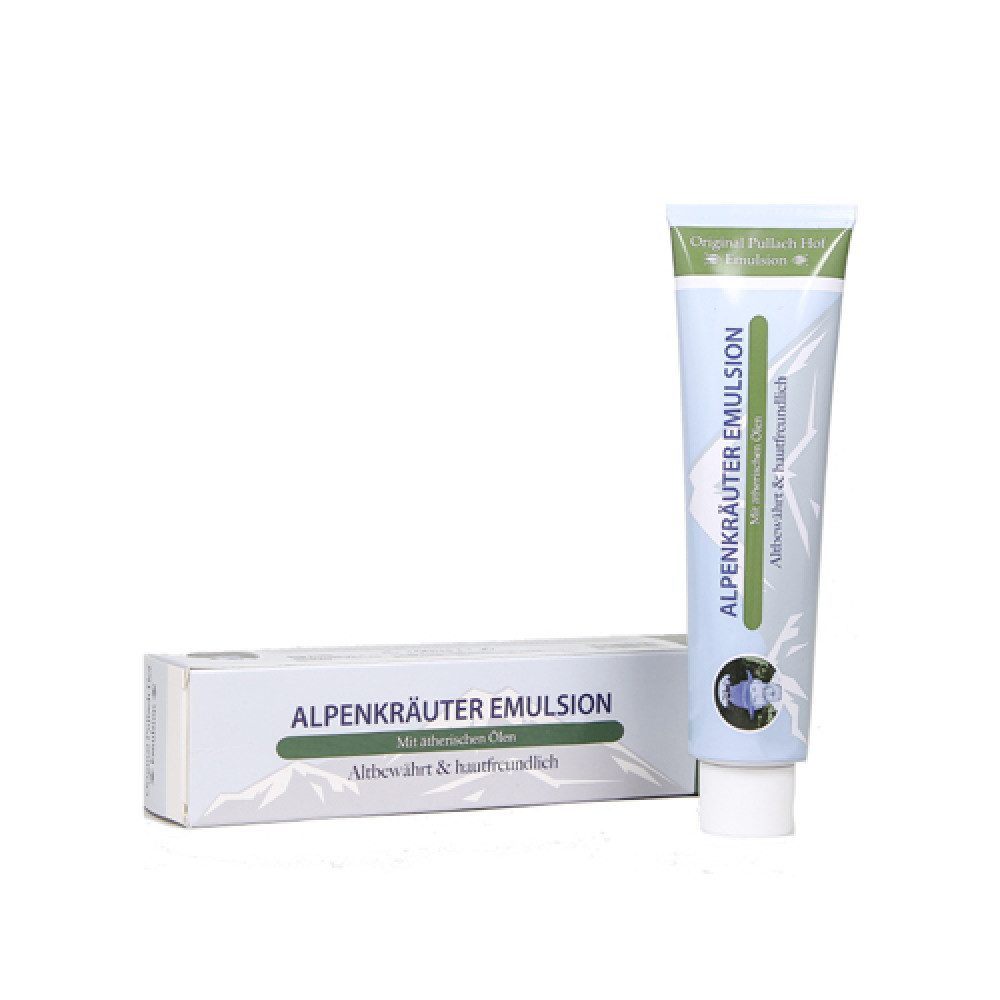 Die Emulsion enthält eine Kombination von fein abbestimmten Kräuter Extraken und ätherischen Ölen. Diese wertvolle Kombination wirkt auf der Haut erfrischend und vitalisierend. Die Alpenkräuter Emulsion ist ein ideales Mittel zur Pflege und Massage, bes. nach dem Sport.Nach dem Auftragen und Einmassieren fühlen Sie die kühlende und erfrischende Wirkung.Die Haut fühlt sich geschmeidig und elastisch an.Haltbarkeit: 10 M nach Öffnung.