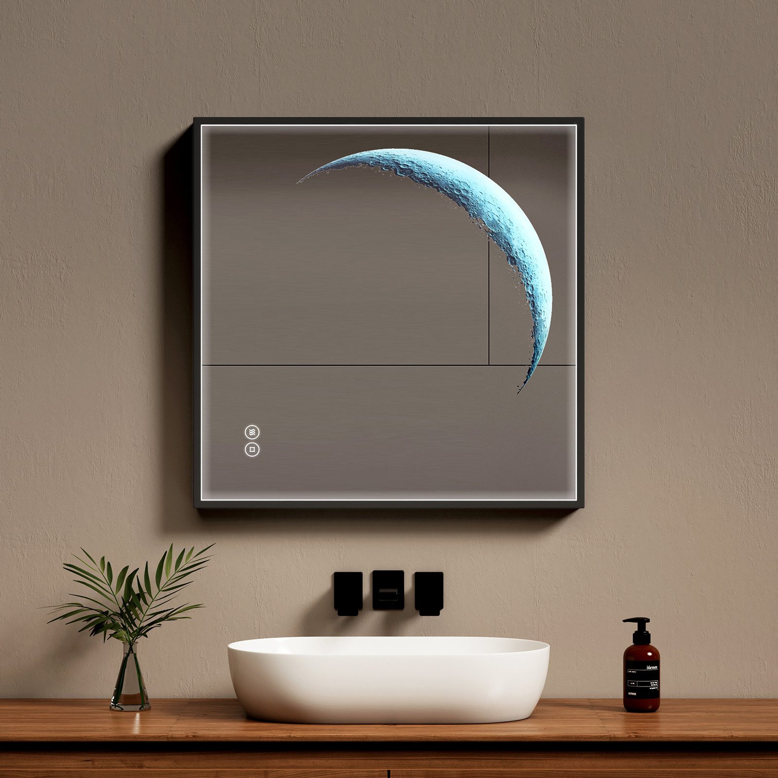 EMKE Quadratisch Badspiegel 6500K LED-Lichtspiegel Mondschein Dekospiegel Touch Wandspiegel mit Schwarzem Rahmen,Beschlagfrei,Energiesparend