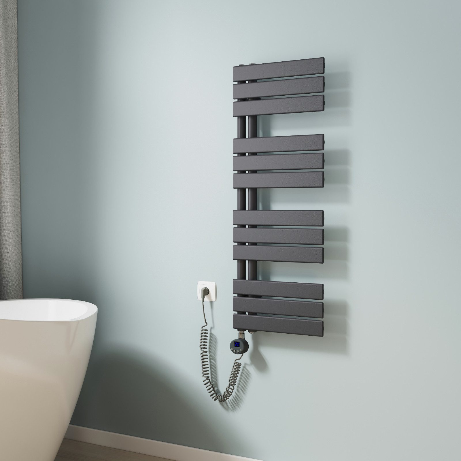● Das Flachrohr des Handtuchtrockners erweitert die Kontaktfläche mit dem Handtuch, trocknet schneller und hat eine bessere Sterilisationswirkung. Innovatives einseitiges Rohrdesign zum einfachen Aufhängen von Handtüchern.