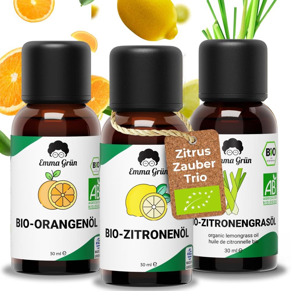 Hol dir den Frischekick aus der Natur mit dem Zitrus Zauber Set von Emma Grün. Das Set kombiniert unser Orangenöl, Zitronenöl und Zitronengrasöl – drei ätherische Öle naturrein, die dir die Sonne Griechenlands in die Küche und ins Zuhause bringen. Perfekt als Lebensmittel geeignet und vielseitig einsetzbar.
