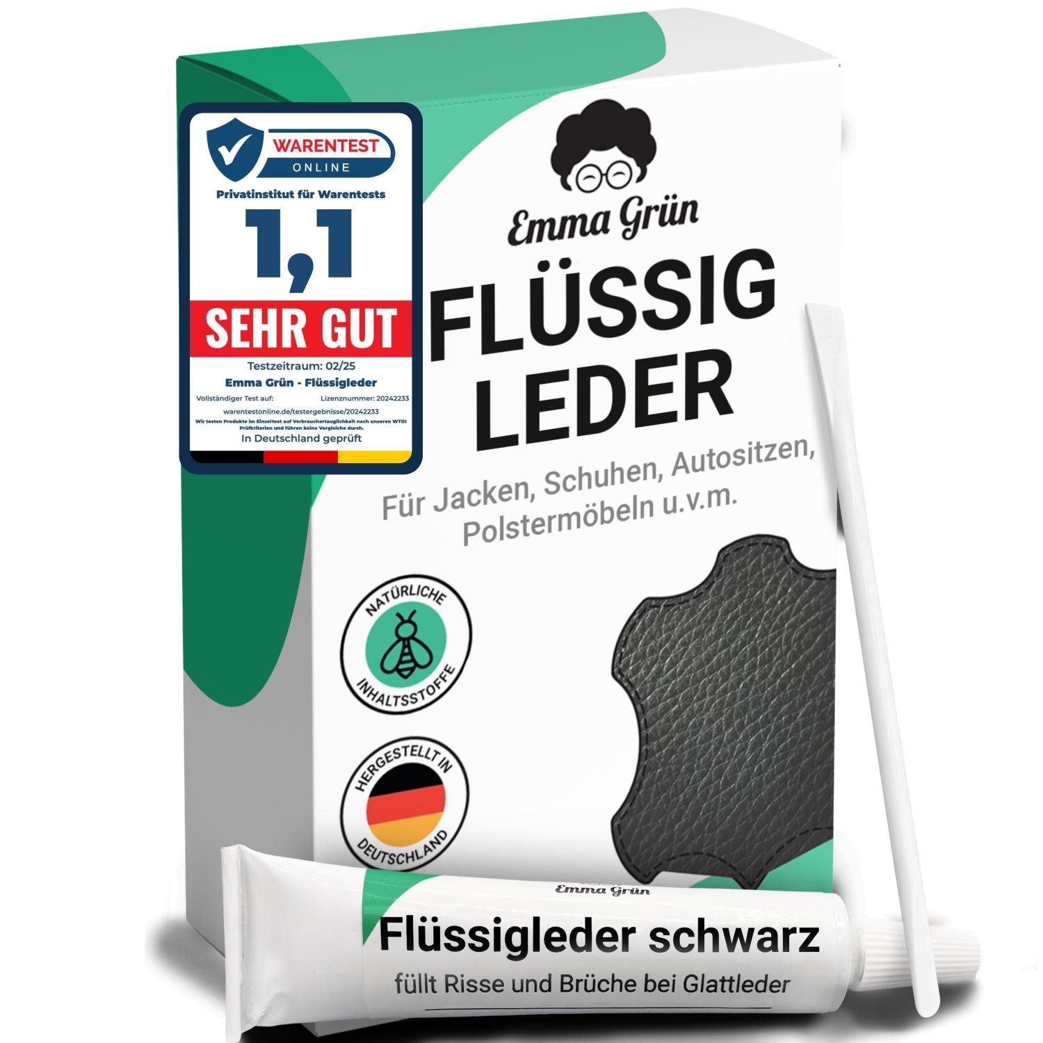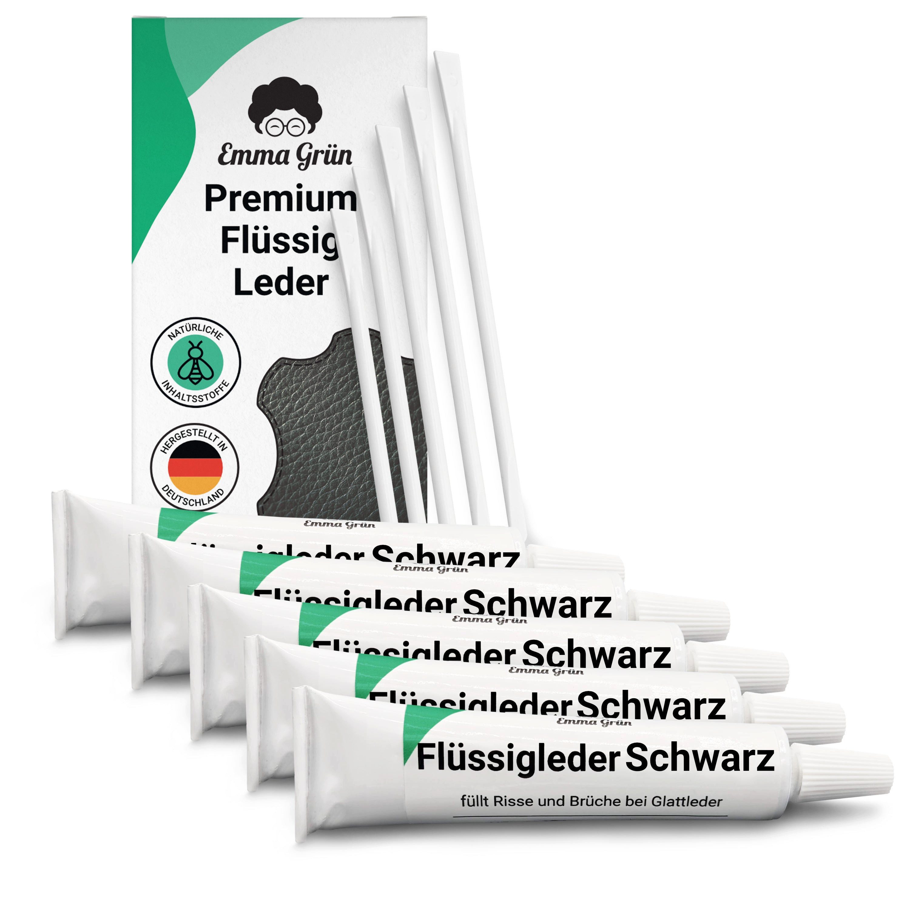 Entdecke die einfache Lösung für Lederreparaturen zu Hause mit dem Emma Grün® Flüssigleder Schwarz 7ml. Perfekt geeignet zum Ausbessern von Rissen, Löchern, Kratzern und Brüchen in Leder und Kunstleder. Ob deine Lederjacke, Schuhe, Autositze oder Polstermöbel - unser Flüssigleder hilft dir, kleine Beschädigungen selbst zu reparieren und deine Lieblingsstücke wie neu aussehen zu lassen.