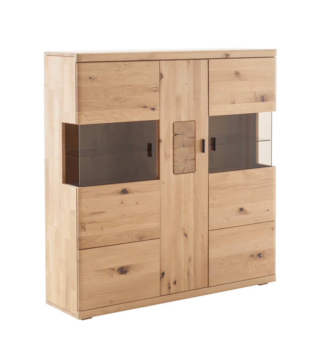 Highboard 133 cm breit mit 3 Türen und Glaseinsätzen seitlich