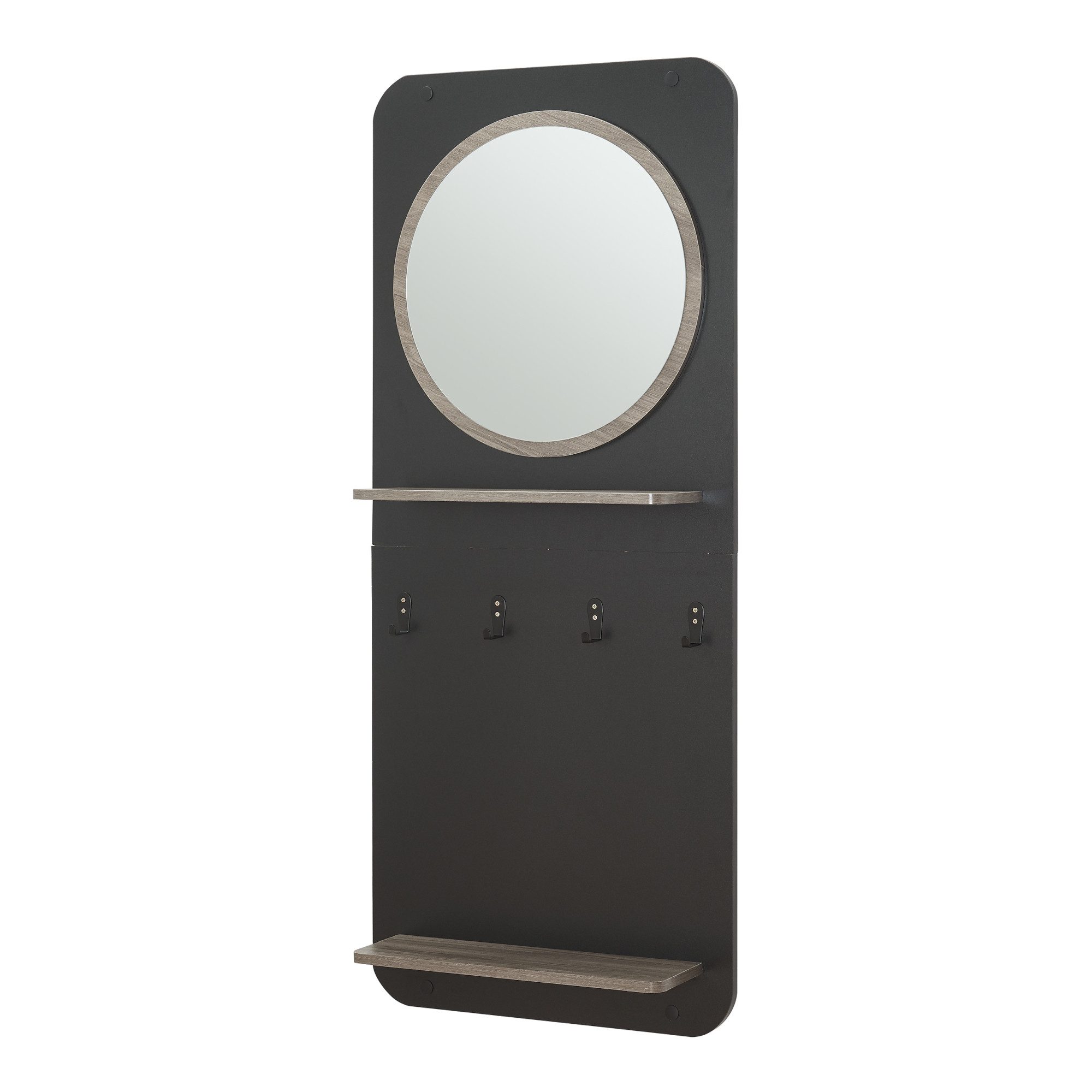 Ein integrierter Spiegel vervollständigt das Design und ermöglicht einen letzten Blick auf Ihr Outfit, bevor Sie das Haus verlassen. Der Spiegel ist rund und harmoniert perfekt mit den restlichen Elementen der Garderobe.