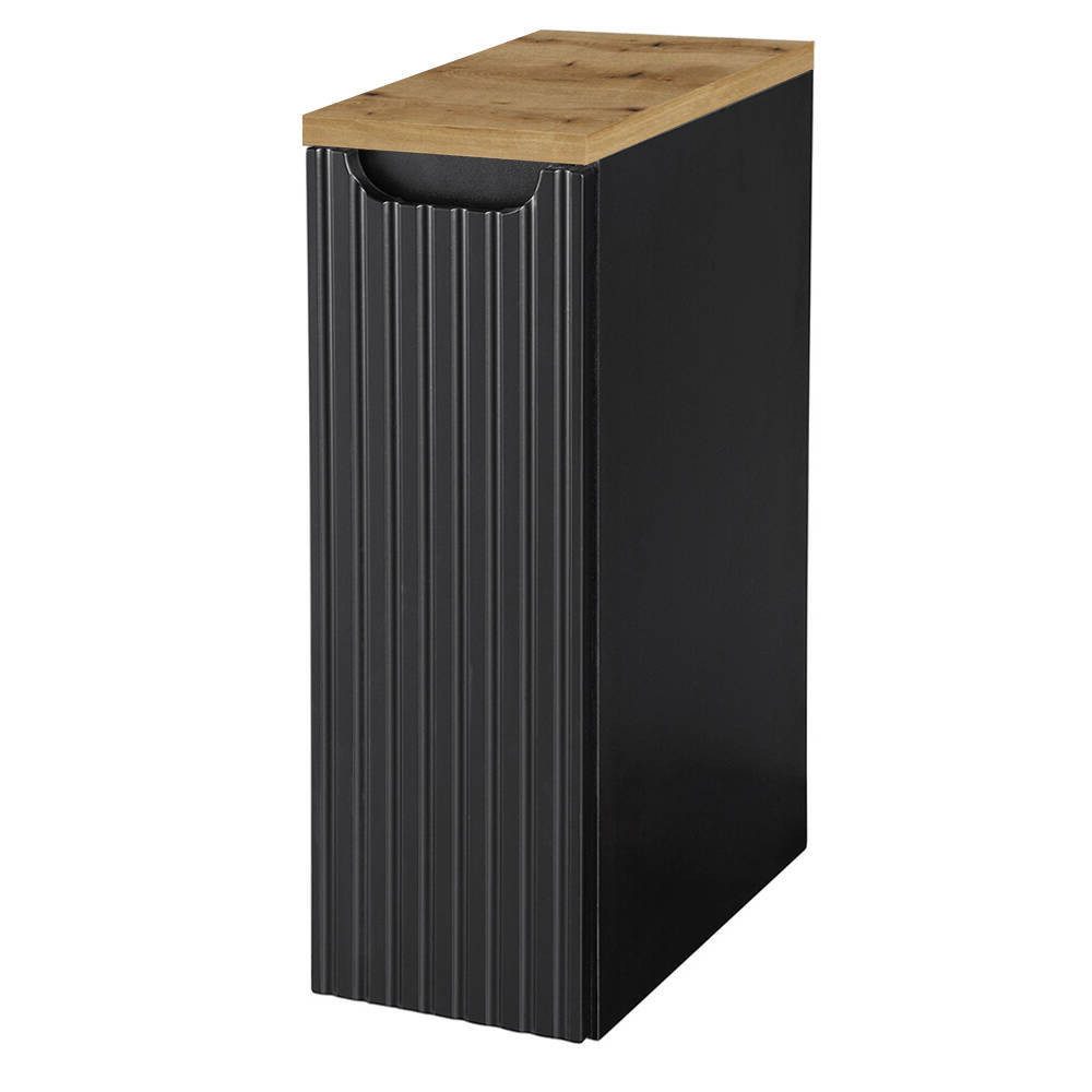 Unterschrank 20cm, schwarz mit Eiche, gerillte Front - SKELBOLU-BLACK
