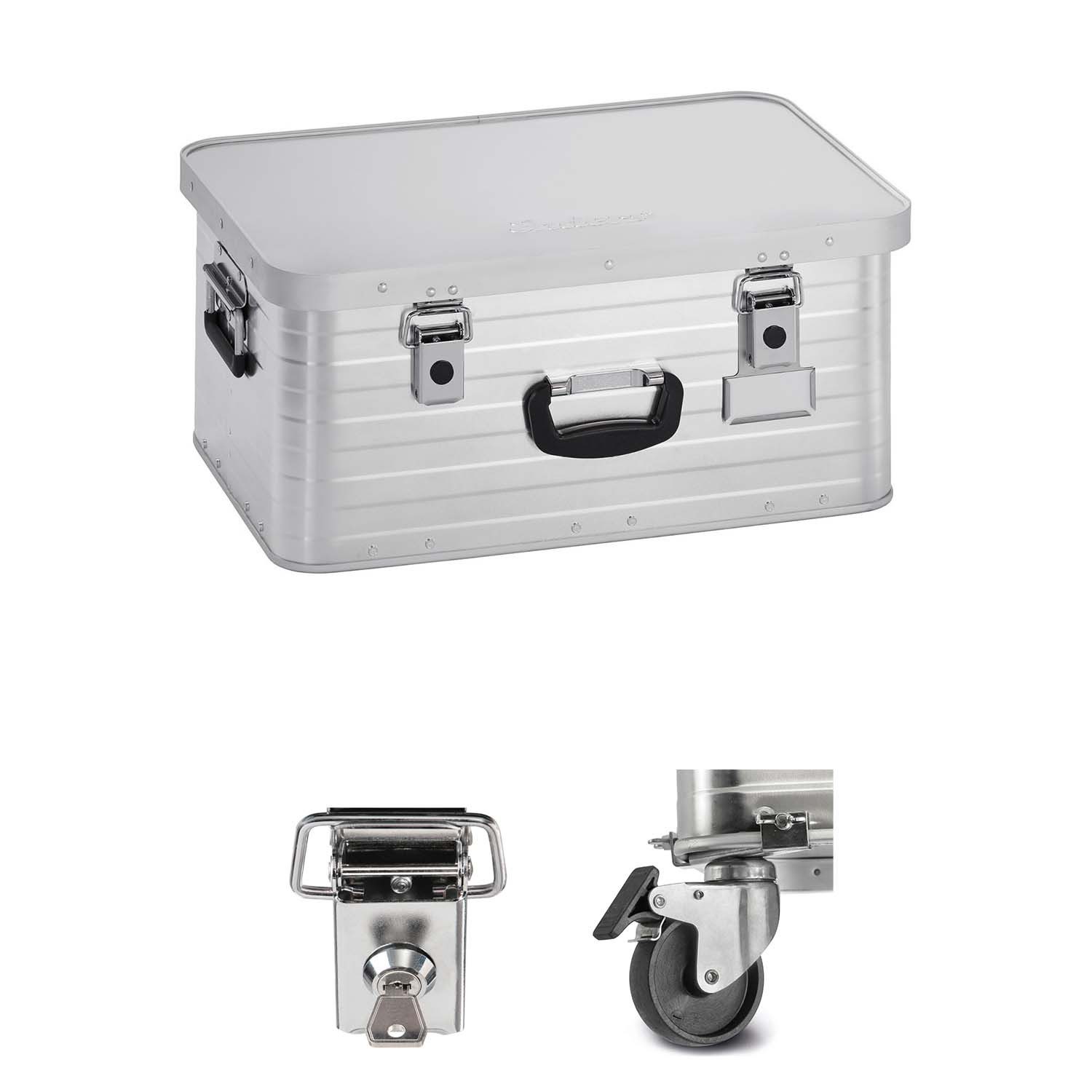 Lieferumfang | Enders Alubox 47 Liter + Schloss-Set + Transportrollen-Set |
