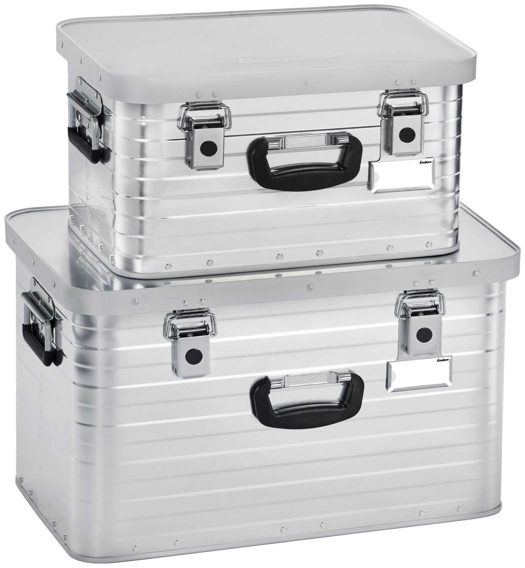 1 Aluminumbox 29L (BxHxL: 46x26x32 cm, 3 kg), 1 Aluminumbox 63L (BxHxL: 57x36x38cm, 4,2 kg)
