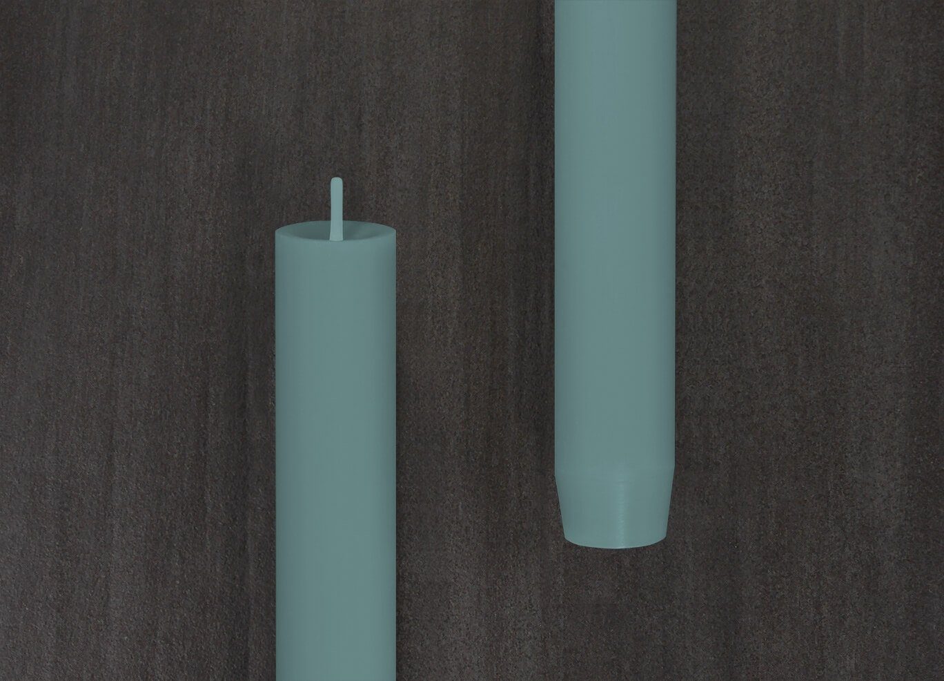 Bei der gegossenen, durchgefärbten Stabkerze von Engels verbindet sich Material, Form, Farbe und Oberflächengestaltung zu einer einzigartigen Qualität. Sowohl die gezogenen als auch die gegossenen Stabkerzen haben den berühmten "Engels-Kopf". Praktisch der Fuß in konischer oder Zapfenform. Er ermöglicht das Einsetzen der Kerze in Leuchter verschiedener Größe.
