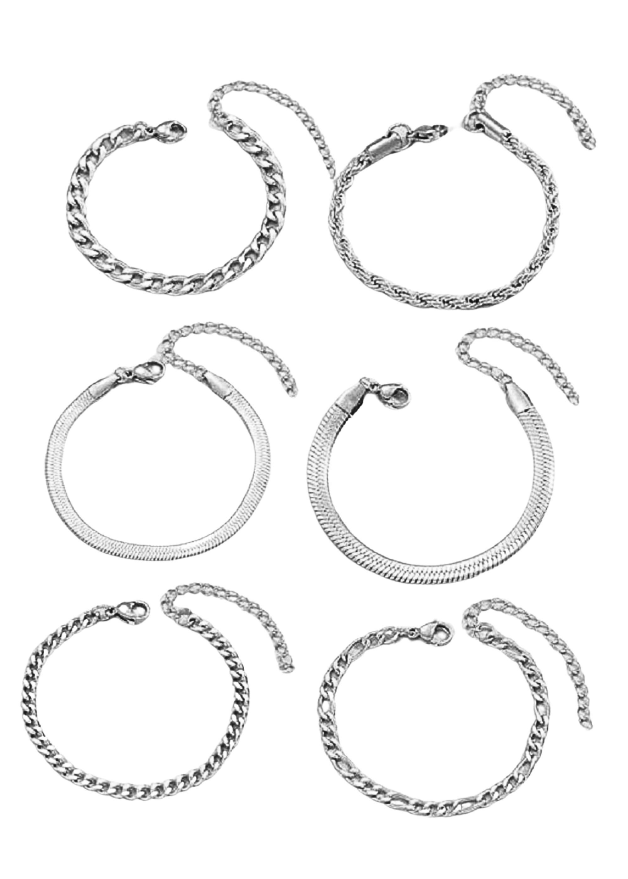 Dieses stilvolle Schmuckset besteht aus sechs wunderschönen Armbändern, die perfekt miteinander kombiniert werden können. Jedes Armband hat eine Длина von 16 cm und eine zusätzliche 5 cm Verlängerung, sodass es sich individuell an Ihr Handgelenk anpassen lässt. Die Armbänder sind aus hochwertigem Edelstahl gefertigt, was für eine edle Optik und außergewöhnliche Haltbarkeit sorgt. Sie sind wasserfest und behalten auch bei täglichem Tragen ihre strahlende Schönheit, ohne dass sie abfärben oder ihren Glanz verlieren. Mit seiner exzellenten Verarbeitung und dem modernen Design bietet dieses Set ein unschlagbares Preis-Leistungs-Verhältnis. Es eignet sich hervorragend als Geschenk für einen besonderen Anlass oder als stilvolle Ergänzung für die eigene Schmuckkollektion. Das Set wird in einer eleganten Geschenkbox geliefert, die das Auspacken zu einem besonderen Erlebnis macht und es zu einem perfekten Geschenk für Ihre Liebsten macht.