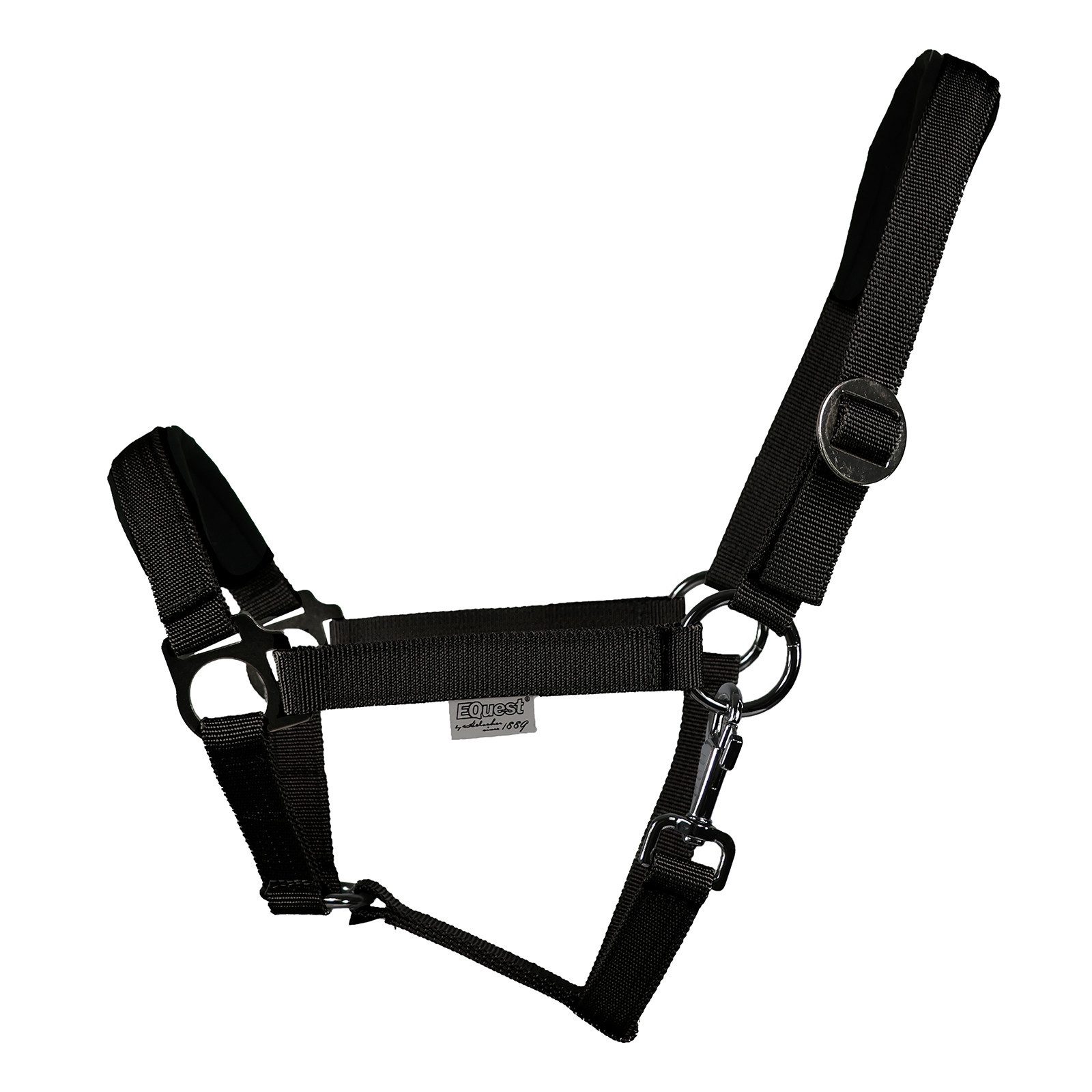 Zeitlos elegant: Das Equest Halfter Regular Plus. Hergestellt aus erstklassigem 25 mm Polypropylen Gurtband, zeichnet sich dieses Halfter durch beeindruckende Strapazierfähigkeit und Reißfestigkeit aus. Das antibakterielle Material verleiht dem Halfter nicht nur eine hygienische Note, sondern sorgt auch für eine hohe Zugfestigkeit und minimale Wasseraufnahme . Die stufenlos verstellbare Schiebeschnalle ermöglicht eine individuelle Anpassung an die Kopfform Ihres Pferdes und gewährleistet optimalen Halt und Tragekomfort . Das Regular Plus Halfter ist zudem mit einer weichen, farblich abgestimmten Polsterung versehen, die den Nasen und Genickbereich schützt.