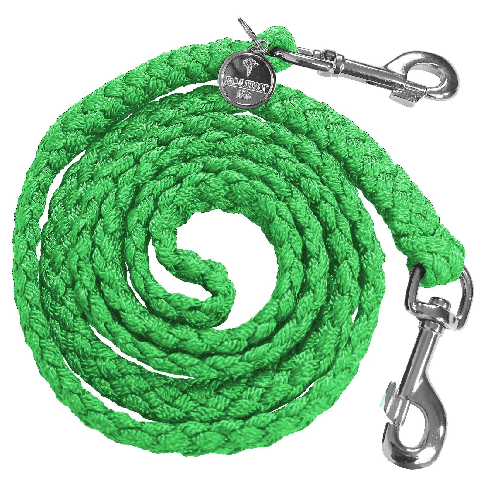 Das vorgeflochtene Material minimiert das Risiko von herausgezogenen Fäden und sorgt für eine langlebige, ästhetische Nutzung. Die beidseitigen Karabinerhaken im Chrom-Finish ermöglichen eine schnelle und einfache Befestigung.