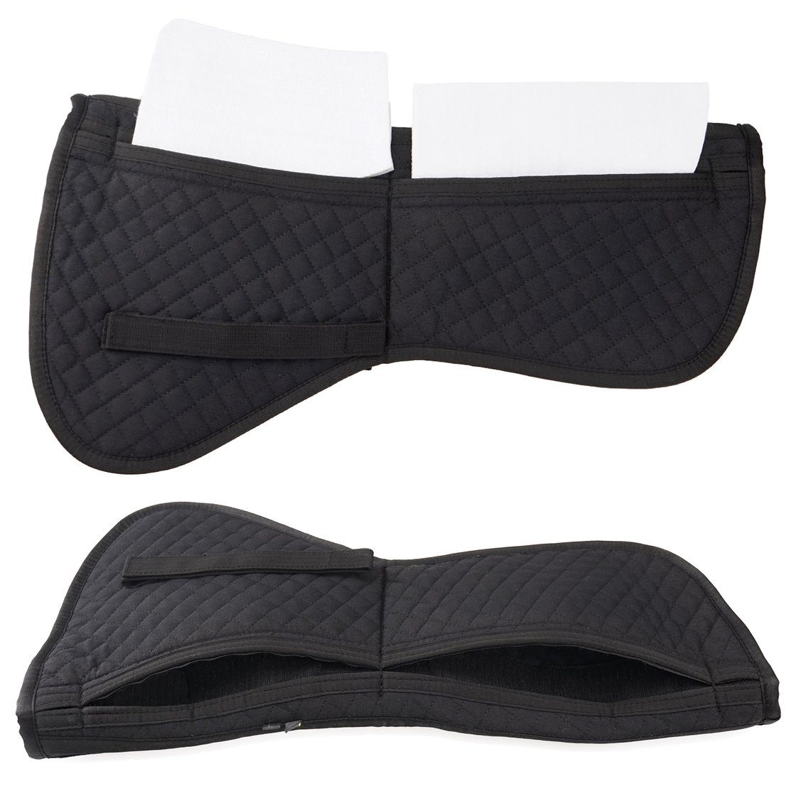 Das Equinate Korrekturpad aus Steppstoff ist vielseitig einsetzbar und dient zur Korrektur bei schneller körperlicher Entwicklung von Jungpferden, bei ausgebildeten Pferden die sich während des Trainings verändern, zum Ausgleich von Unregelmäßigkeiten des Körperbaus (z.B. ungleiche Seiten) sowie bei altersbedingten abgesenktem Rücken zur Wiederherstellung der Sattelbalance. Das Pad kann mit Hilfe der Filzeinlagen (pro Tasche) auf ca. 3, 6 oder 9 mm aufgepolstert werden, somit wird eine Feinabstimmung der Sattellage problemlos möglich.