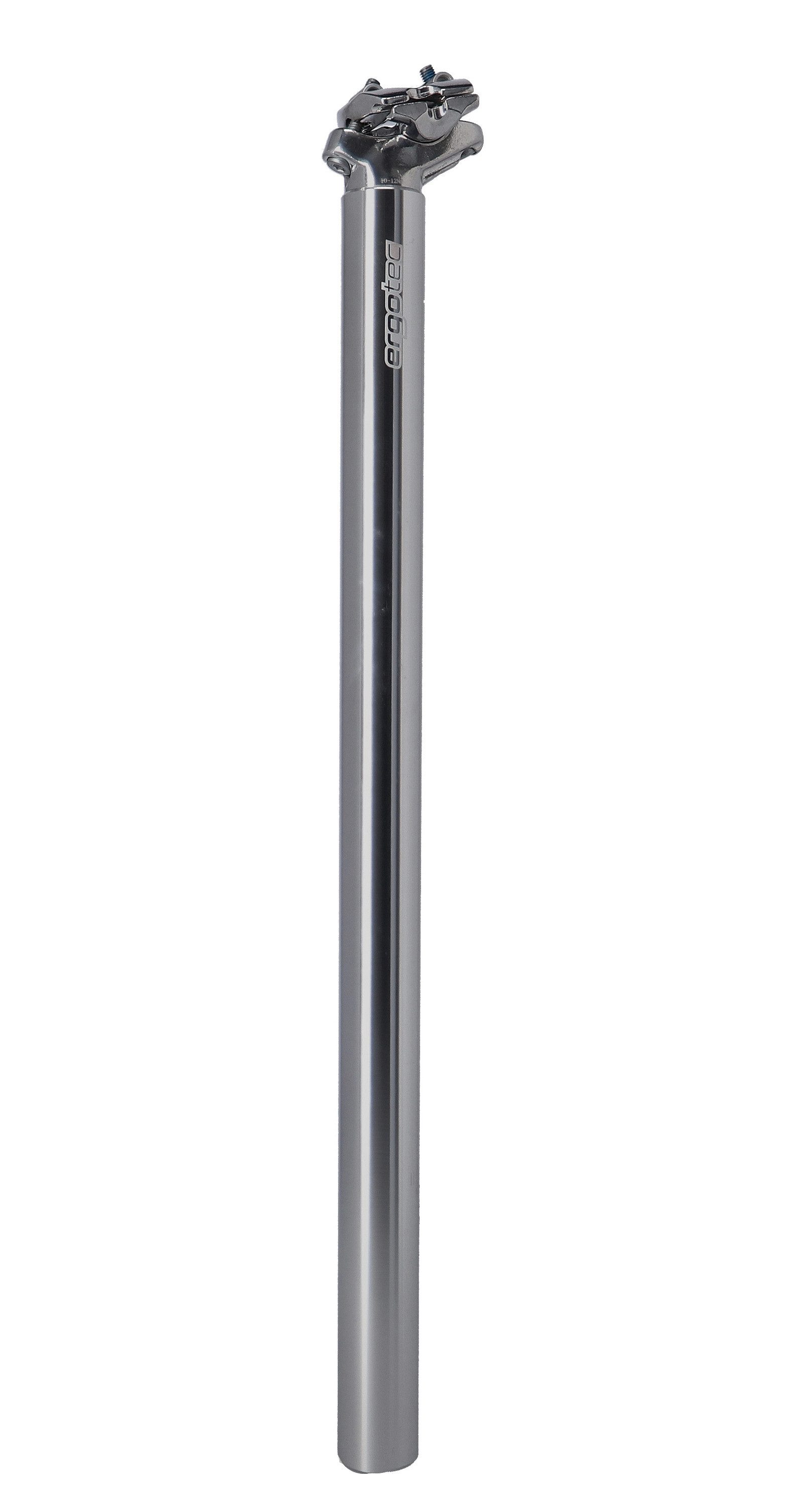 Aluminium-Patent-Sattelstütze mit 2-Schrauben-Klemmung und 10 mm Versatz nach hinten. Für Sättel mit 7 und 8 mm starken Streben-D geeignet.