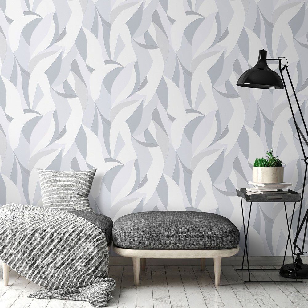 Auch in der dritten Designer-Kollektion von ELLE Decoration finden sich moderne und stilvolle Vliestapeten, die Eleganz in jeden Raum bringen. Все Tapete dieser Highend Kollektion haben einen außergewöhnlichen Charakter ganz nach dem Motto „Tapeten mit Leidenschaft!“. Die Tapete 10331-10 in weiß und Grautönen mit Metallic-Effekt in Silber hat ein abstraktes grafisches Muster mit sichelförmigen Elementen, die an Blätter erinnern. Entdecke auch die anderen Tapeten von Elle Decoration bei uns im Shop.