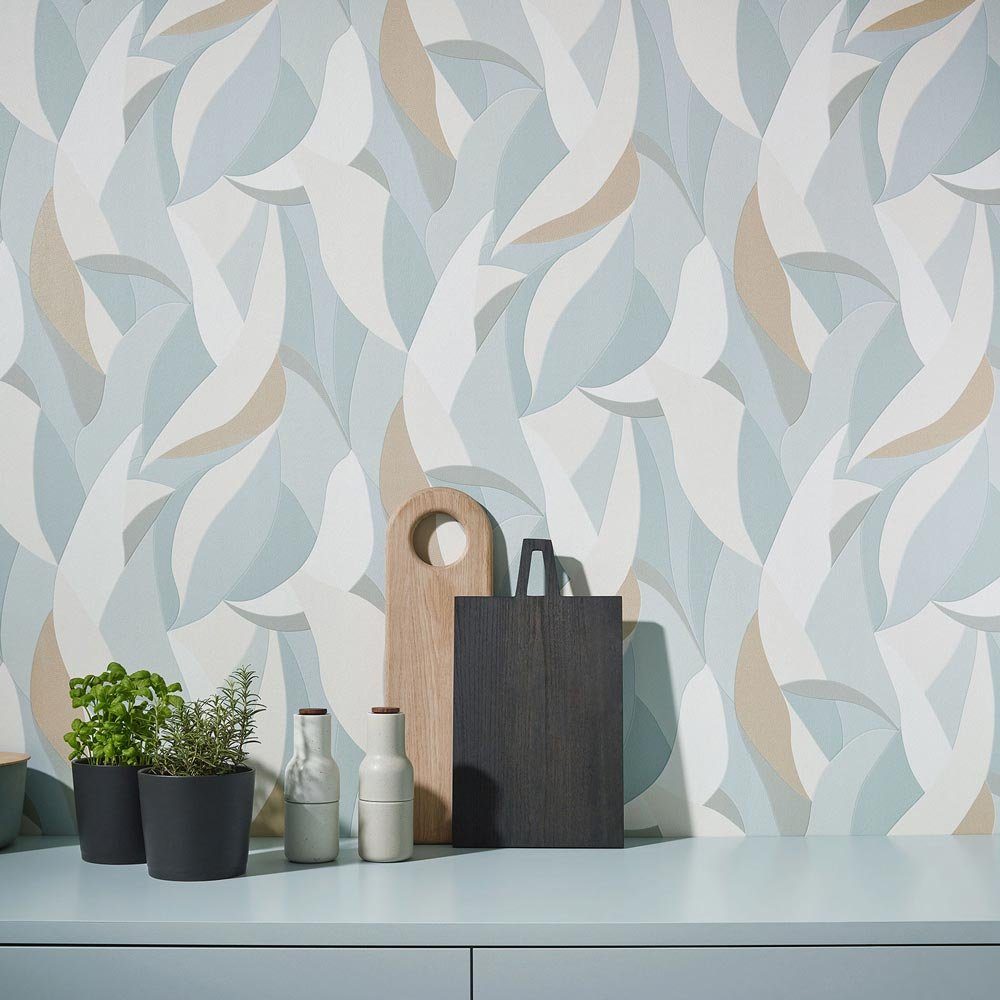 Auch in der dritten Designer-Kollektion von ELLE Decoration finden sich moderne und stilvolle Vliestapeten, die Eleganz in jeden Raum bringen. Все Tapete dieser Highend Kollektion haben einen außergewöhnlichen Charakter ganz nach dem Motto „Tapeten mit Leidenschaft!“. Die Tapete 10331-07 in weiß, Blau- und Grüntönen mit Glitzer-Effekt in Gold hat ein abstraktes grafisches Muster mit sichelförmigen Elementen, die an Blätter erinnern. Entdecke auch die anderen Tapeten von Elle Decoration bei uns im Shop.