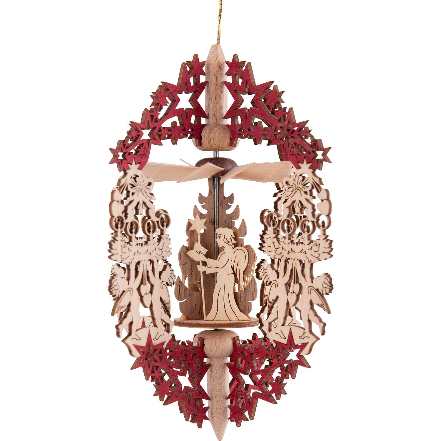 Ein Produkt aus der 'Christbaum- und Osterschmuck'-Serie - Diese weihnachtliche Dekoration aus der Werkstatt von Harald Kreißl ist verziert mit fein gearbeiteten nostalgischen Motiven. Sie kann sowohl als Christbaumanhänger als auch als Raumschmuck aufgehängt werden. Bei aufsteigender Wärme versetzt das kleine Flügelrad das Wärmespiel in Bewegung.