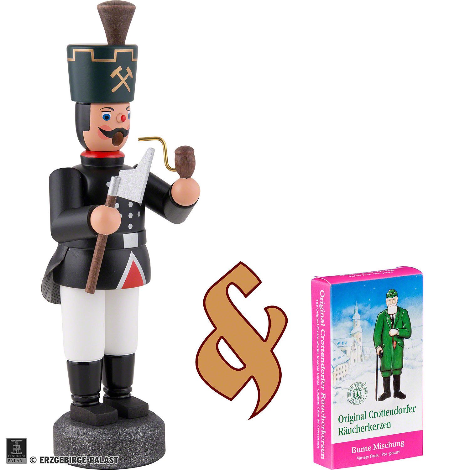 Exklusives Angebot im Erzgebirge-Palast Dieses Set enthält 1× Räuchermännchen Bergmann mit Hacke - 22 cm 1× Crottendorfer Räucherkerzen - Bunte Mischung