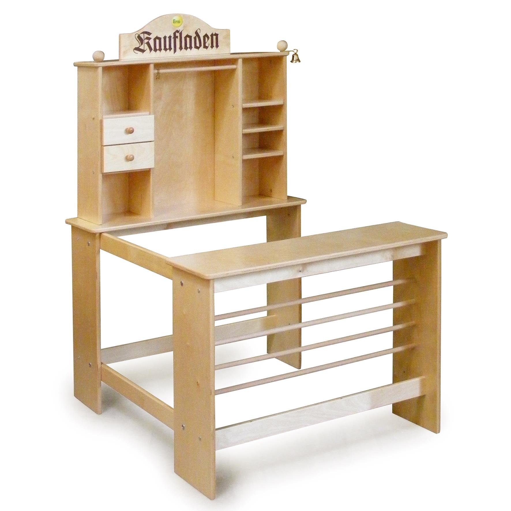Klingeling – Hereinspaziert, hereinspaziert! Dieser klassische Kaufladen bietet Kindern die Möglichkeit, alltägliche Einkaufssituationen nachzuspielen und so ihre sprachliche, geistige und soziale Entwicklung zu fördern. Mit seinem nostalgischen Schriftzug und der Ladenglocke versprüht dieser Kaufladen besonderen Charme.