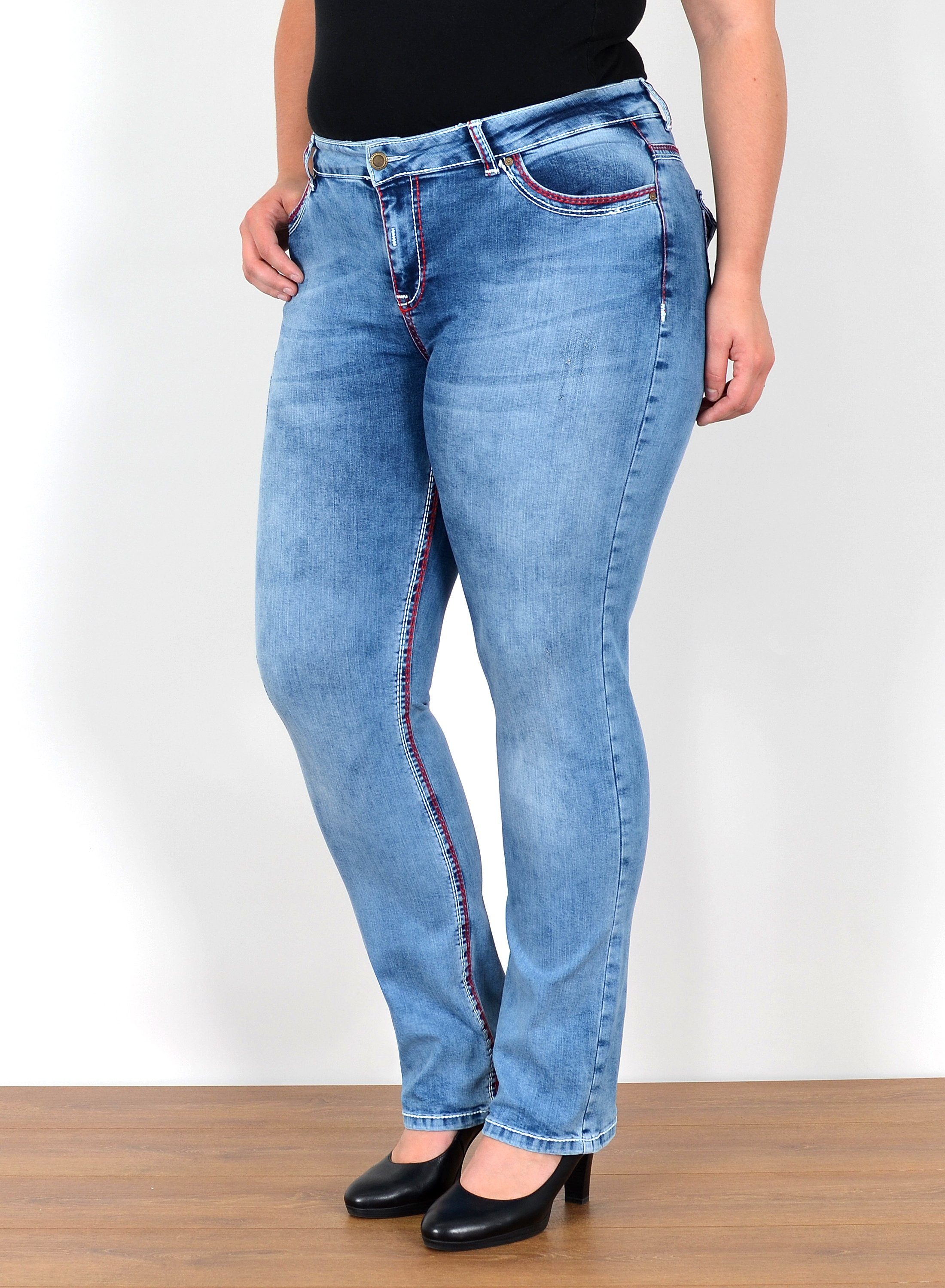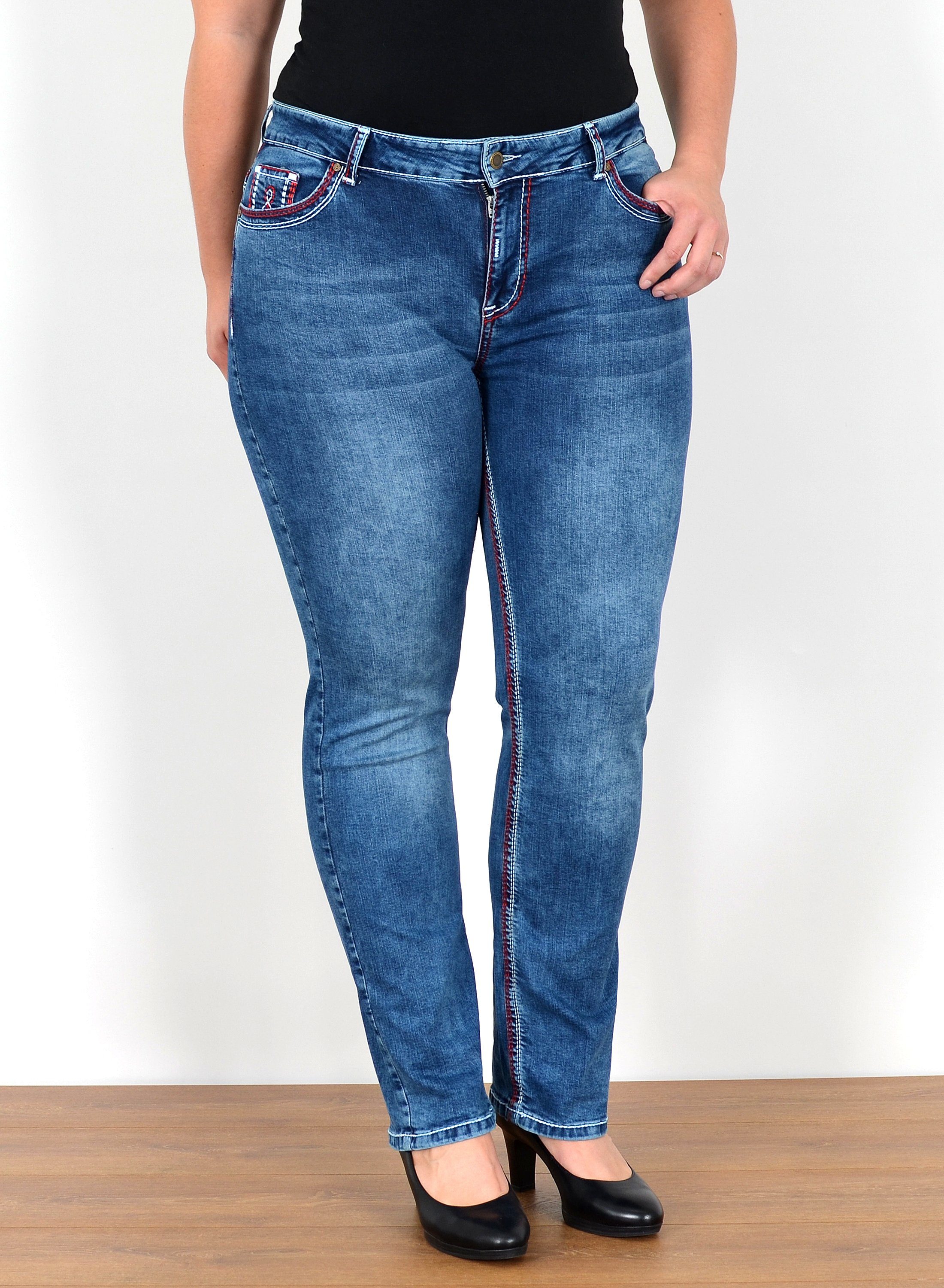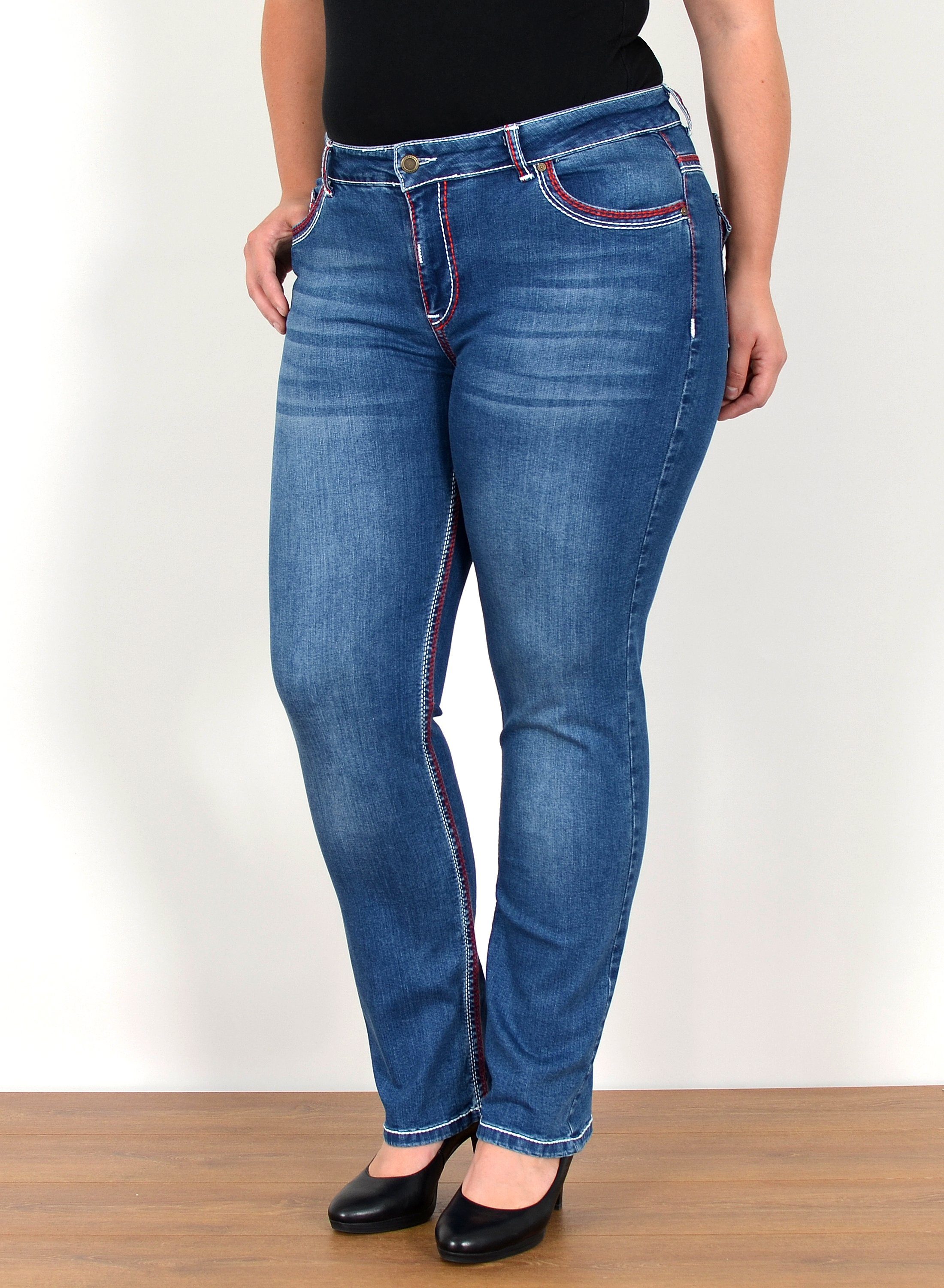 Straight Fit Jeans Damen High Waist Hose Kontrastnähte bis Plus Size