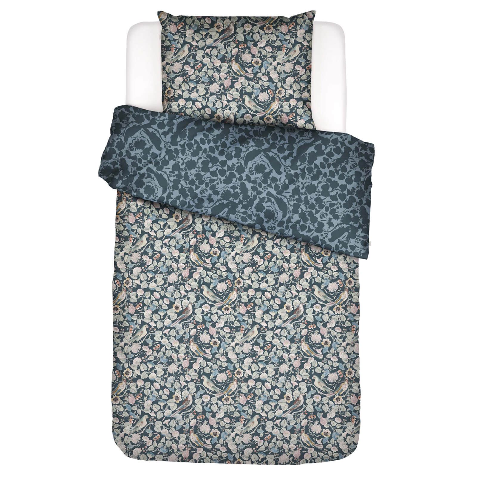 Das Design Aleste von Essenza verzaubert mit einer stilvollen und lebendigen Darstellung von Pflanzen und Vögeln. Auf dem sanft getönten Hintergrund kommen feine Blüten in zarten Nuancen von Rosa, Hellblau und Cremeweiß wunderbar zur Geltung. Zwischen Blättern und Blüten sitzen mehrere Vögel auf filigranen Zweigen und lassen eine natürliche, träumerische Szenerie entstehen. Die Rückseite zeigt eine verspielte Silhouettengrafik. Die feine Paspelierung an den Rändern von Kissen- und Bettbezug rundet das Design elegant ab. Gefertigt aus 100 Prozent GOTS-zertifizierter Bio-Baumwolle, ist der Stoff nicht nur umweltfreundlich, sondern auch atmungsaktiv und feuchtigkeitsregulierend. Die edle Satinbindung sorgt für ein besonders weiches, geschmeidiges Gefühl und einen dezenten Glanz.