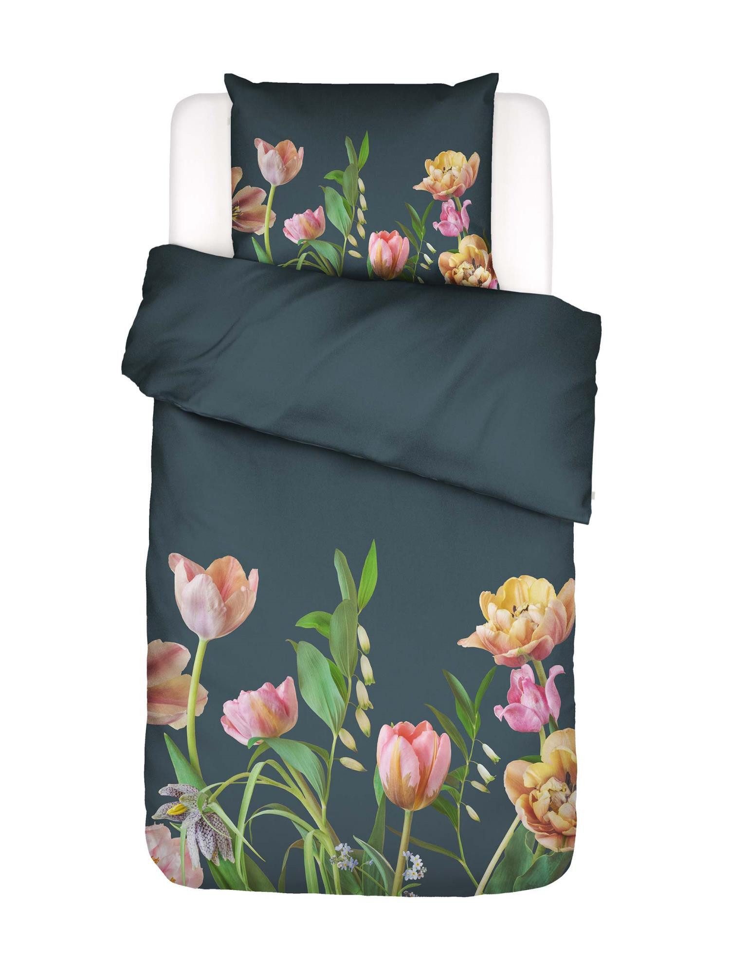 Die Eloise zeigt ein lebhaftes Arrangement von Tulpen in voller Blüte, die elegant aus dem unteren Teil der Komposition vor einem beruhigenden Uni-Hintergrund aufsteigen. Die Blumen haben ihre ursprünglichen Farben: von weichem Rosa bis zu sattem Gelb. Zwischen den Tulpen ist auch die Frittillaria, die wunderschöne Schachbrettblume, zu sehen. Diese frische und flamboyante Sammlung von Blumen und Pflanzen schafft ein dynamisches, aber ruhiges Bild. Das Design wurde in Zusammenarbeit mit der Fotografin Kreetta Järvenpää (geboren 1974, Finnland) entwickelt. Ein wunderschönes Uni der Hintergrundfarbe des Drucks erscheint, sobald Sie die Eloise umdrehen. Mit diesem Bettbezug schaffen Sie einen besonderen Blickfang in Ihrem Schlafzimmer. Der ESSENZA Bettbezug, hergestellt aus 100% Bio-Baumwolle, ist atmungsaktiv und feuchtigkeitsabsorbierend. Baumwollsatin ist zweifellos unser Lieblingsstoff für Bettwäsche. Das GOTS-Zertifikat garantiert biologisch angebaute Baumwolle und eine verantwortungsvolle Produktion. Es ist gut für Ihre Haut, die Erde und die Arbeiter. Darüber hinaus fühlt sich ein Baumwollsatin-Bettbezug weicher und glatter an als normale Baumwolle dank seines speziellen Satin-Webens, das dem Stoff einen weichen Glanz verleiht.