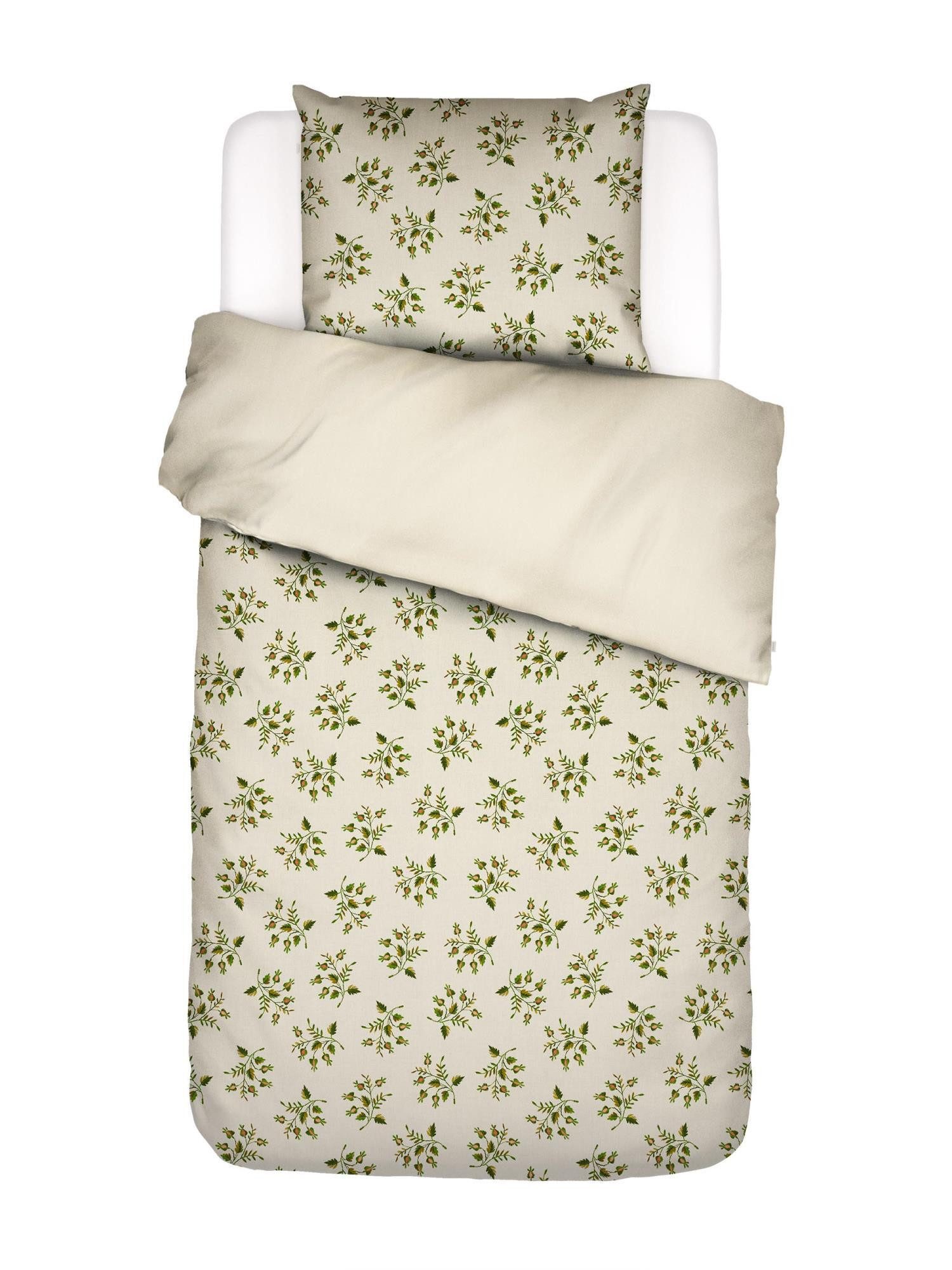 Der romantische Jolien-Print, inspiriert von einem gestickten Zweig aus einem Album des Rijksmuseums aus dem 19. Jahrhundert, bringt historischen Charme in Ihr Schlafzimmer. Auf dem sanft gefärbten Hintergrund entfalten sich sorgfältig gestickte Zweige mit grünen Blättern und Knospen, die das Gefühl der handwerklichen Stickerei noch verstärken. Die detailreich gestickten Zweige fügen sich harmonisch in das Dessin ein und bilden einen zeitlosen und beruhigenden Kontrast. Drehen Sie Jolien um und erleben Sie, wie die unifarbene Hintergrundfarbe das Ganze ausgleicht. Der Bettbezug aus 100 % Bio-Baumwolle in Leinenoptik sorgt für einen natürlichen und ruhigen Look in Ihrem Schlafzimmer. Dieser Stoff ist atmungsaktiv und feuchtigkeitsabsorbierend, sodass Sie einen optimalen Schlafkomfort genießen können. Die Struktur der Baumwolle verleiht dem Print zusätzliche Tiefe und sorgt für ein luxuriöses Gefühl.