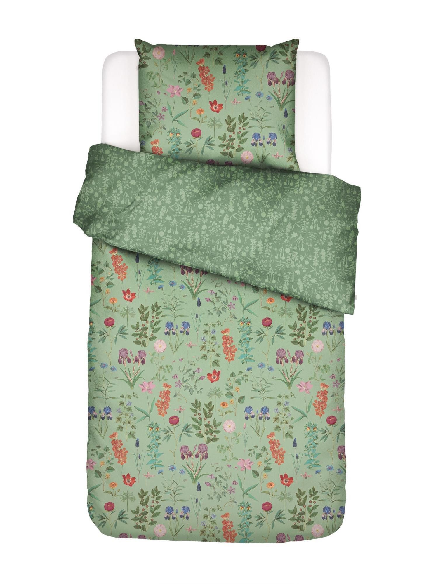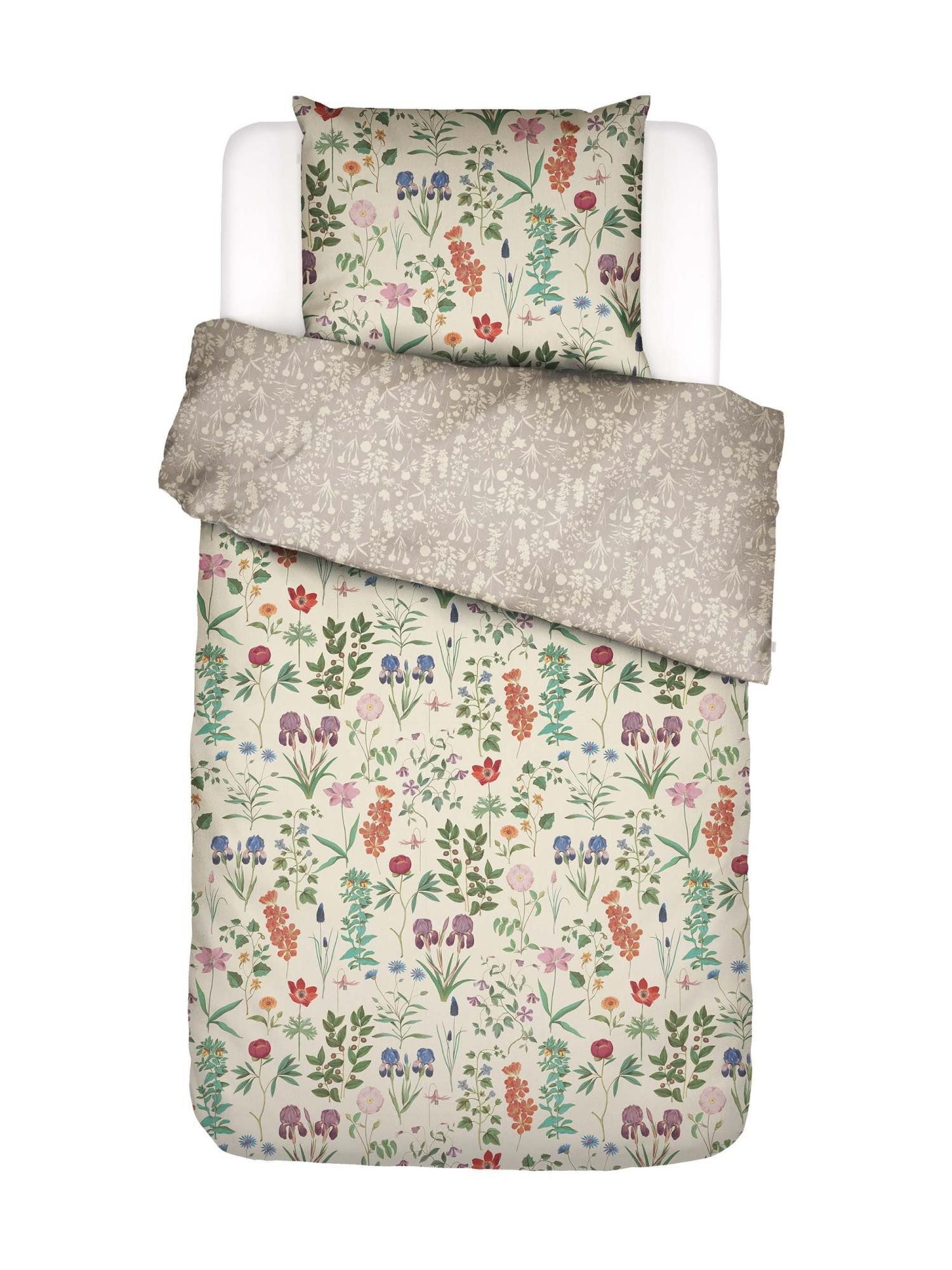 Dieser bezaubernde Print zeigt eine außergewöhnliche Vielfalt an Blumen. Die Farben reichen von zartem Rosa über Orange bis hin zu tiefem Rot, mit hellblauen und violetten Akzenten auf einer dezenten Hintergrundfarbe. Jedes Blumenelement, von der Wildrose, der Anemone, der Iris, der Clematis, der Pfingstrose, der blauen Strohblume, der Kapuzinerkresse, der Glockenblume, den blauen Traubenhyazinthen bis hin zur Ringelblume, wurde sorgfältig entworfen und trägt zu dem lebendigen Garten bei. Die Ringelblume ist die kleinste Blume der Vielfalt, aber die Namensgeberin für dieses Dessin. Die grünen Blätter ziehen sich durch die Komposition und bilden einen frischen Kontrast. Drehen Sie den Bettbezug Marigold um, um den Print in der Silhouette neu zu erleben. Der ESSENZA Bettbezug aus 100 % Bio-Baumwolle ist atmungsaktiv und feuchtigkeitsabsorbierend. Das GOTS-Zertifikat garantiert biologisch angebaute Baumwolle und eine verantwortungsvolle Produktion. Das ist gut für Ihre Haut, die Erde und unsere Mitarbeiter. Außerdem fühlt sich ein Bettbezug aus Baumwollsatin weicher und geschmeidiger an als normale Baumwolle, da die spezielle Satinbindung dem Stoff einen sanften Glanz verleiht.