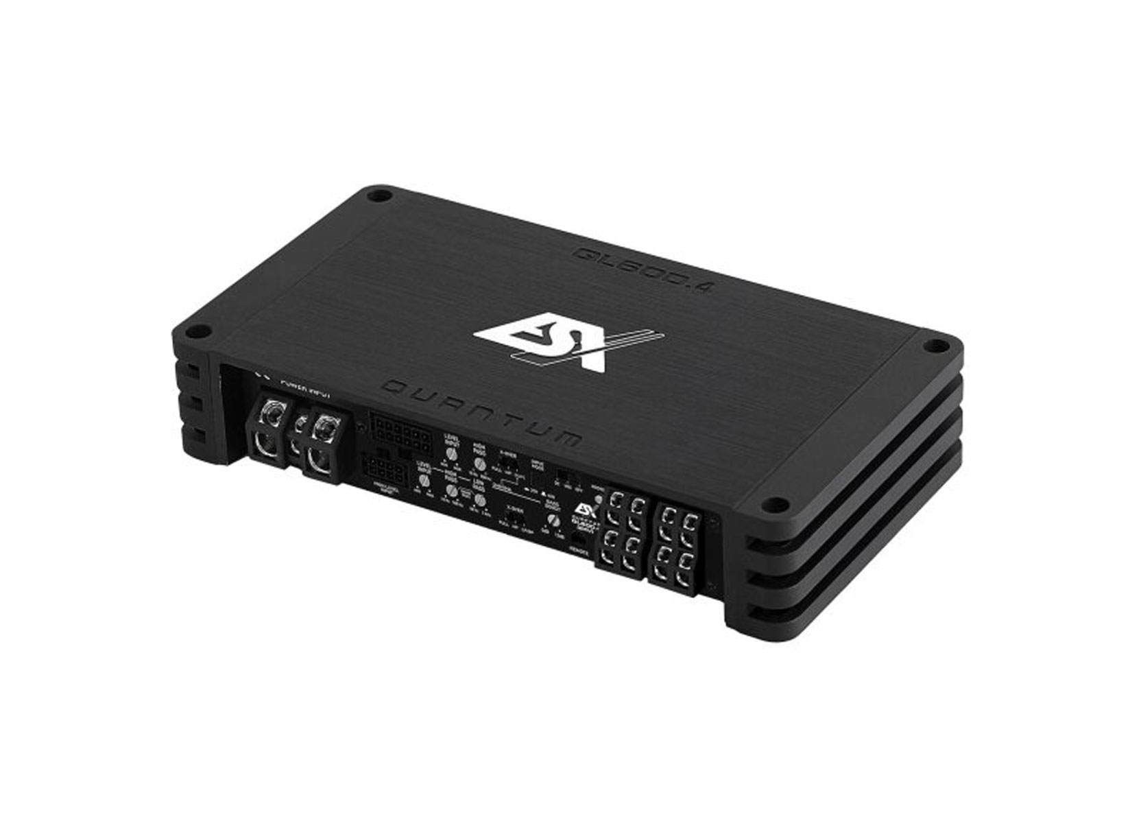Die im ESX Portfolio ebenfalls brandneuen QUANTUM QL Verstärker sind technisch gesehen die kleinen Geschwister der QE Modelle. Ideal sind sie dort einsetzbar, wo der Einbauplatz sehr knapp bemessen ist. Sie sind ebenfalls emissionsfrei und haben wie die großen QE-Modelle feinste Class-D Technik an Bord, die hinsichtlich Leistung, Soundqualität und Einstellmöglichkeiten keine Wünsche offen lässt. Die Optik und Abmessungen teilen sich die QL Modelle mit den XE-DSP Amps und dem X-DSP Prozessor, so dass durch die Kombination der Geräte hochwertige DSP-Systeme mit viel Power aufgebaut werden können. Die platzsparend einsetzbare Fernbedienung ist ebenfalls bei den QL-Modellen im Lieferumfang enthalten. Die 24V-Versionen können in LKW und Reisebussen mit einem Bordnetz von 24 Volt betrieben werden.