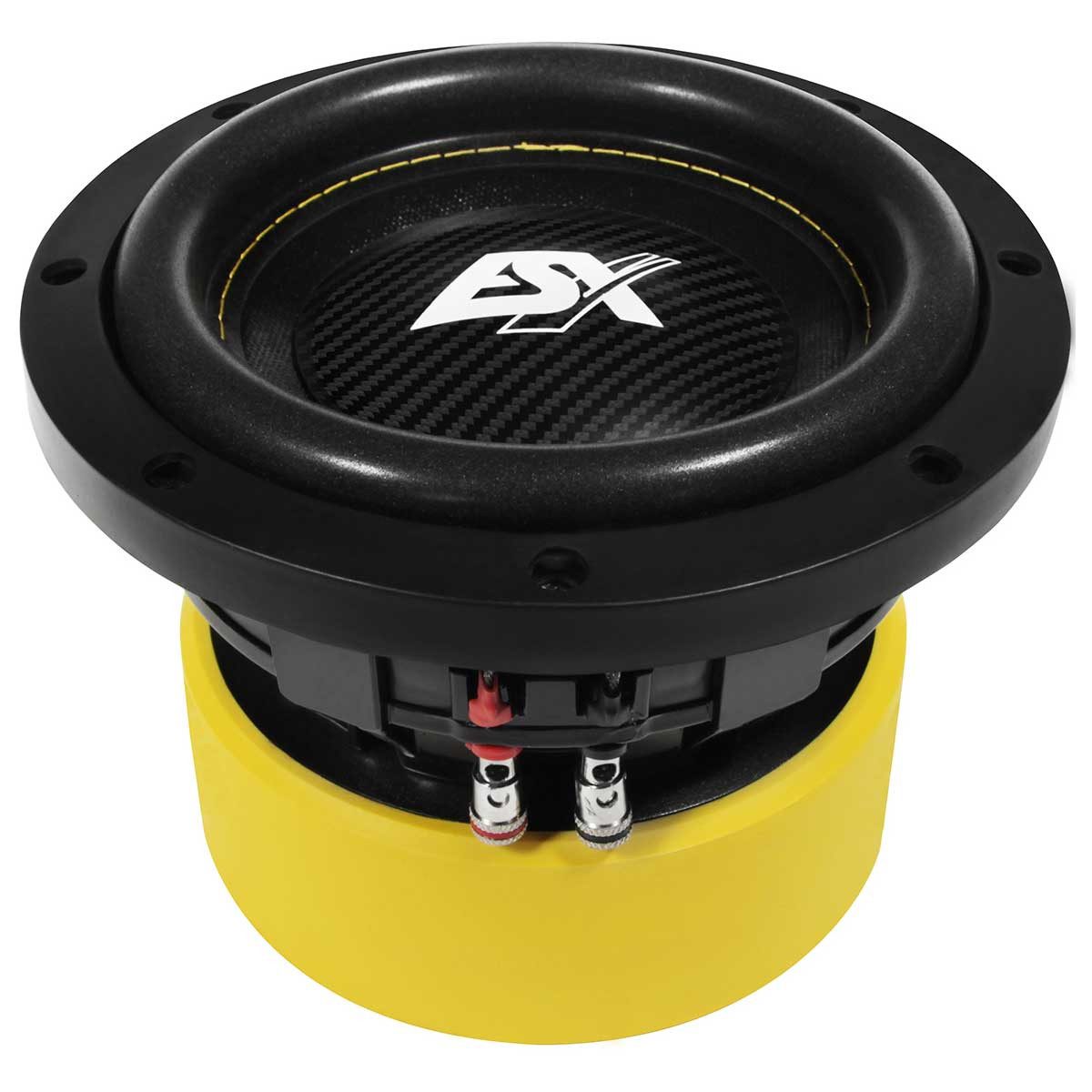 QUANTUM QXE Subwoofer bestechen durch ihre sehr kompakte Bauform. Fast schon zierlich kommt der QXE6D2 Subwoofer rüber, aber mit seinem Aluminium-Druckguss-Korb, den Doppelmagneten mit 2 x 40 oz. und der vernähten Sicke signalisiert er: „Vorsicht, es kann sehr laut werden!“ Die beiden größeren Subs haben einen kräftigen 2 x 63 oz. Doppelmagneten und genau wie der QXE6D2 eine Polkernbohrung sowie eine belüftete T-Plate für optimale Kühlung. Beim QXE6D2 kommt eine große 2“ (50 mm) Schwingspule mit einer RMS Belastbarkeit von 250 Watt und beim QXE8D2 und dem ganz neuen Modell QXE10D2 sogar eine 2,5“ (64 mm) Schwingspule mit einer Belastbarkeit von 400 bzw. 600 Watt RMS zum Einsatz. Extrem lang gewickelte Schwingspulen von 30 bzw. 36 mm Wickelhöhe erlauben den Woofern einen linearen Hub von +/- 10 mm. Все drei Modelle haben eine Doppelschwingspule mit jeweils 2+2 Ω. Hiermit können Impedanzen von 1x4 Ω oder gar 1x1 Ω konfiguriert werden. Problemlos können so auch mehrere Subwoofer hintereinander an einem Verstärker betrieben werden.