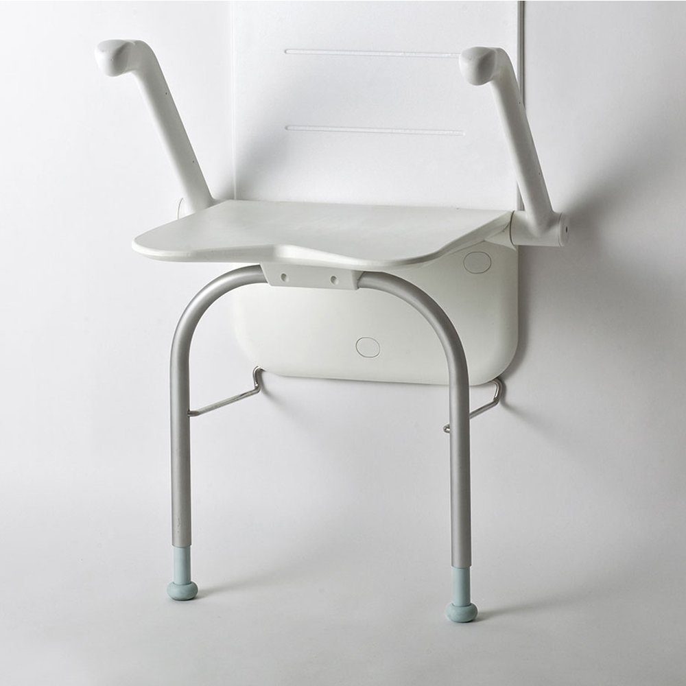 Hierbei handelt es sich um den Duschklappsitz mit Armlehnen und Stützbeinen.