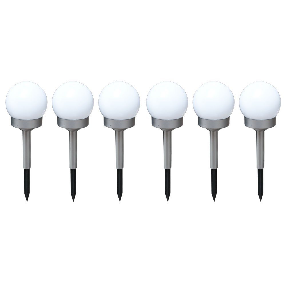LED-Leuchtmittel fest verbaut, Neutralweiß, 6x LED Außen Solar Steck Leuchten Erdspieß Balkon Kugel Strahler Park