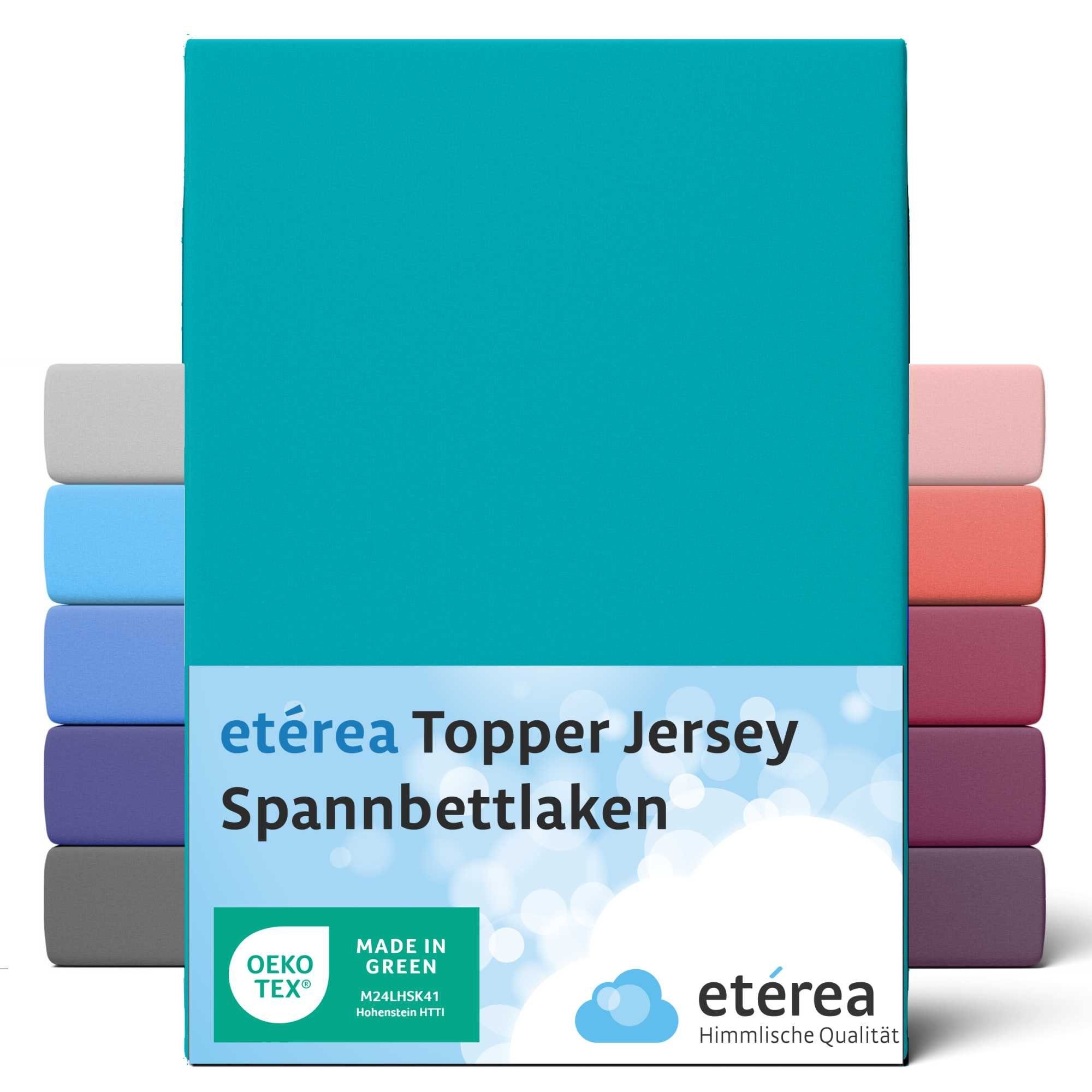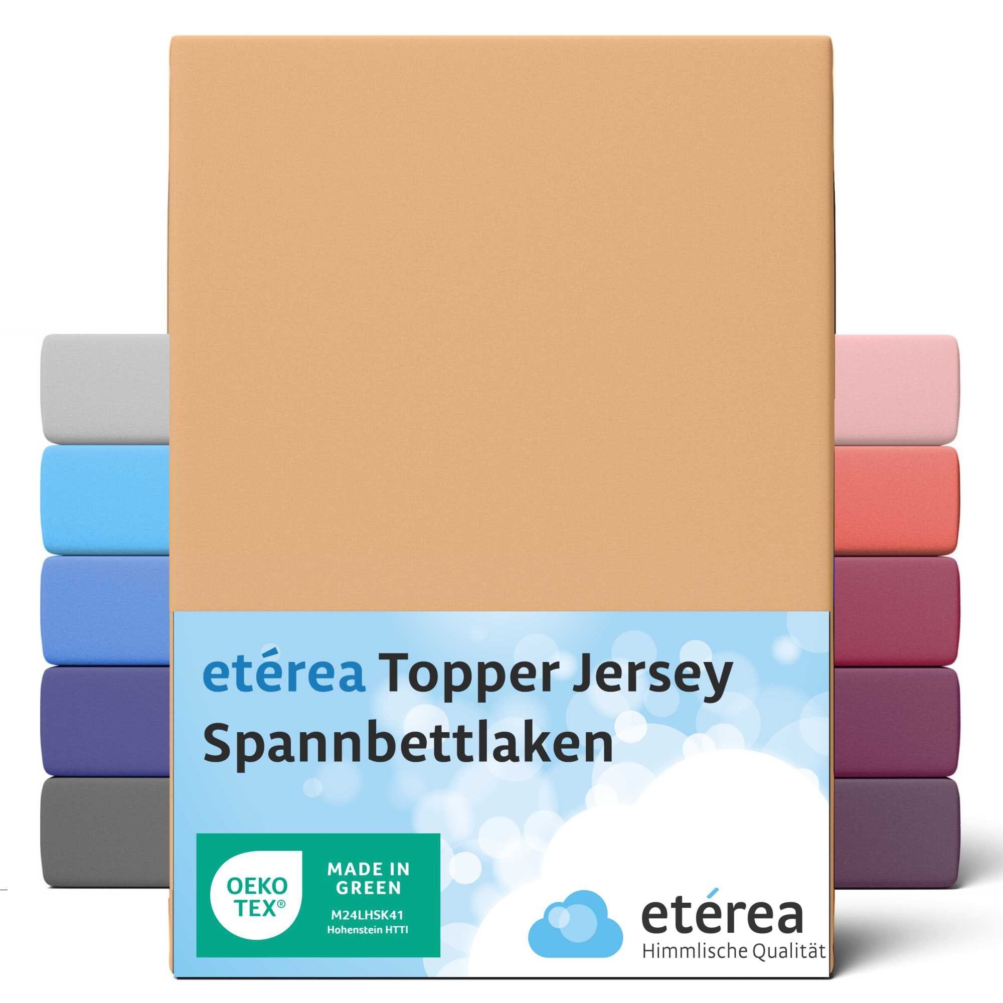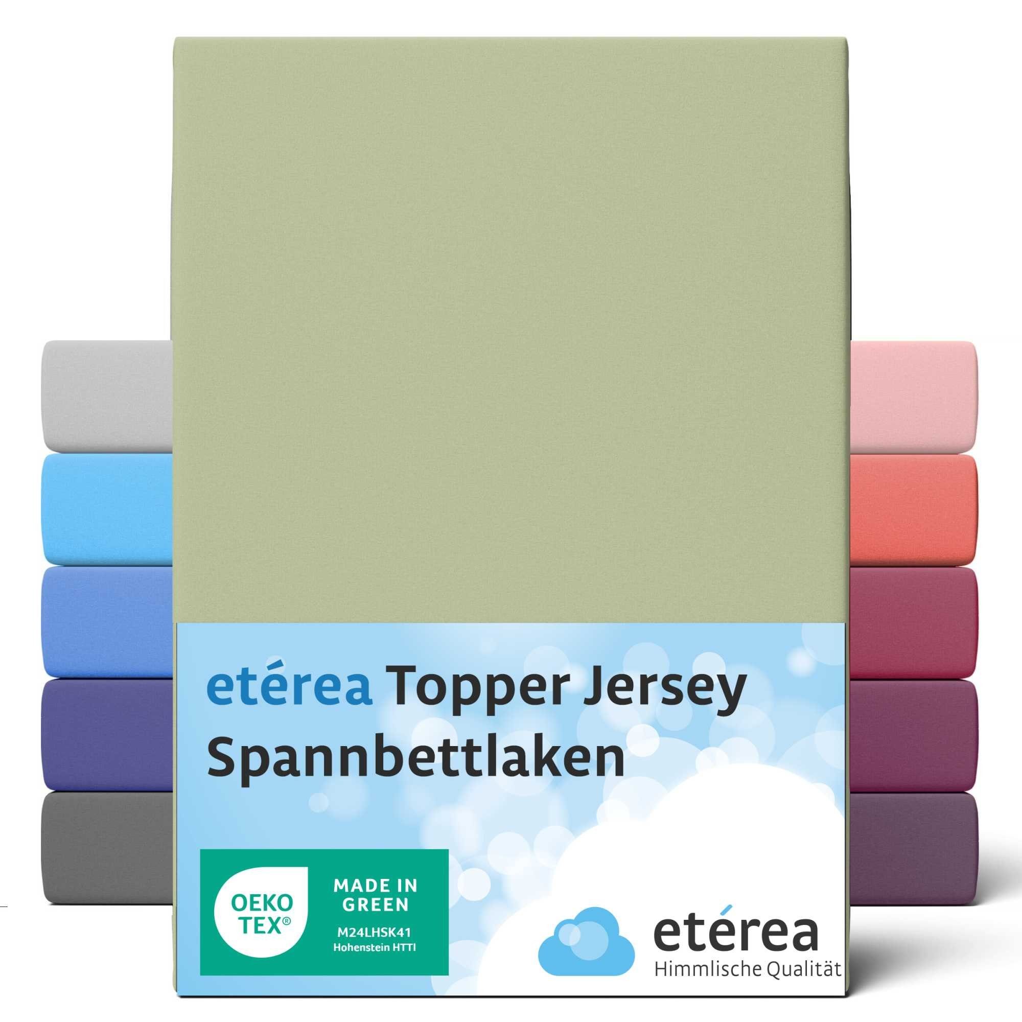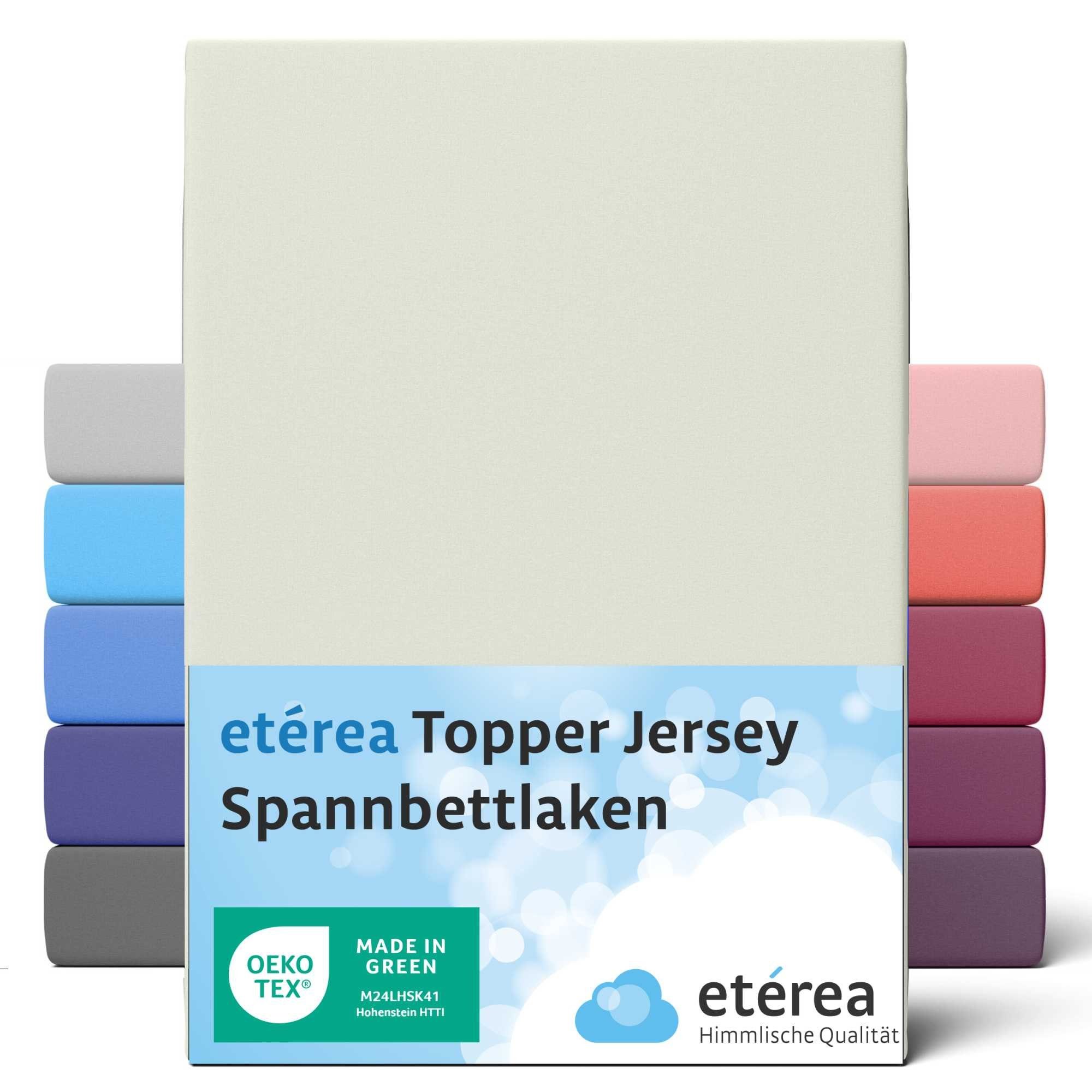 Tauchen Sie ein in den Komfort und die Qualität des etérea Jersey Topper Spannbettlakens aus reiner Baumwolle, maßgeschneidert für Topper bis zu 10 cm Höhe. Mit einer feinen Grammatur von etwa 140 g/m² bietet dieses Betttuch nicht nur eine perfekte Passform, sondern auch eine hochwertige Haptik. Das Geheimnis liegt im hochwertigen Garn, das eine dichtere Webart ermöglicht und somit die Lebensdauer des Laken verlängert. Zudem minimiert es den unerwünschten Effekt von Knötchenbildung (Pilling) und sorgt somit für lang anhaltende Weichheit und Komfort. Die Handhabung dieses Spannbetttuchs gestaltet sich äußerst angenehm. Dank des geschickt platzierten Rundumgummis lässt es sich spielend leicht auf die Matratze aufziehen und genauso mühelos wieder abnehmen. Darüber hinaus garantiert dieses rutschfeste Design, dass das Spannbetttuch stets an Ort und Stelle bleibt, selbst während ruheloser Nächte, und somit für einen ungestörten Schlafkomfort sorgt. Dieses etérea Jersey Topper Spannbettlaken vereint Qualität, Komfort und Funktionalität auf höchstem Niveau. Verwöhnen Sie sich mit der geschmeidigen Berührung reiner Baumwolle und erleben Sie Nacht für Nacht das unvergleichliche Gefühl von Luxus und Erholung, das dieses Laken bietet.