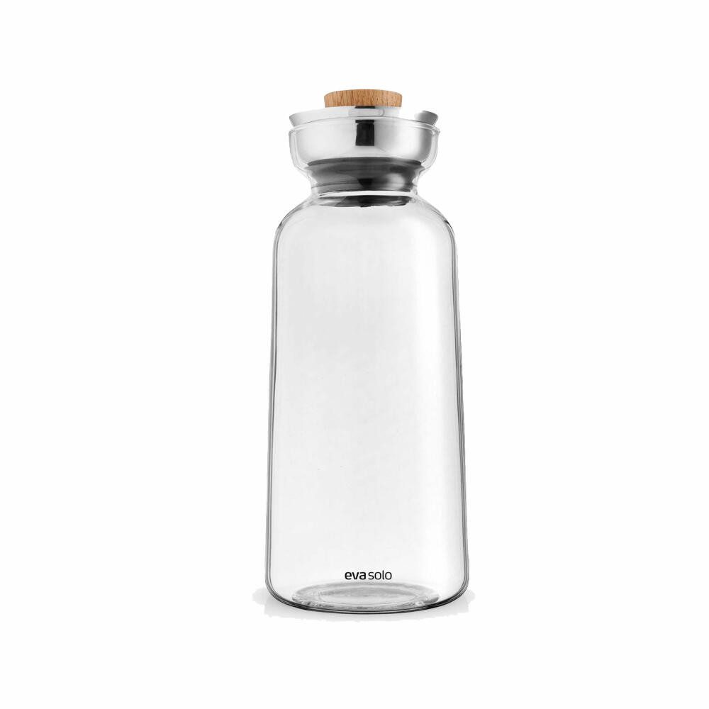 1 Eva Solo Glaskaraffe Silhouette, Karaffe, Wasserkaraffe mit Deckel, Borosilikatglas, Edelstahl, Eichenholz, Klar, 1 L, 591505