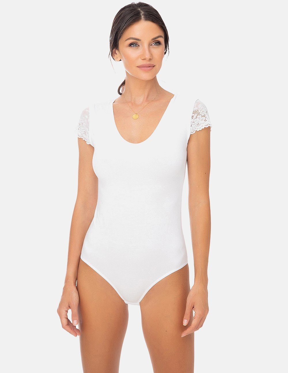 Besondere Merkmale | Damen Kurzarmbody mit Spitzenärmeln |