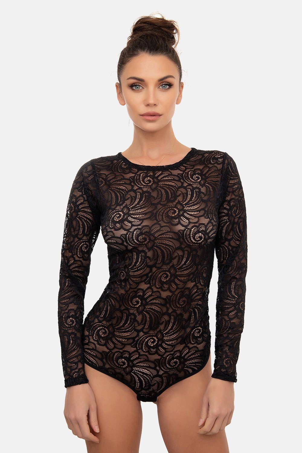 Besondere Merkmale | Damen Langarmbody Spitze Rundhals |