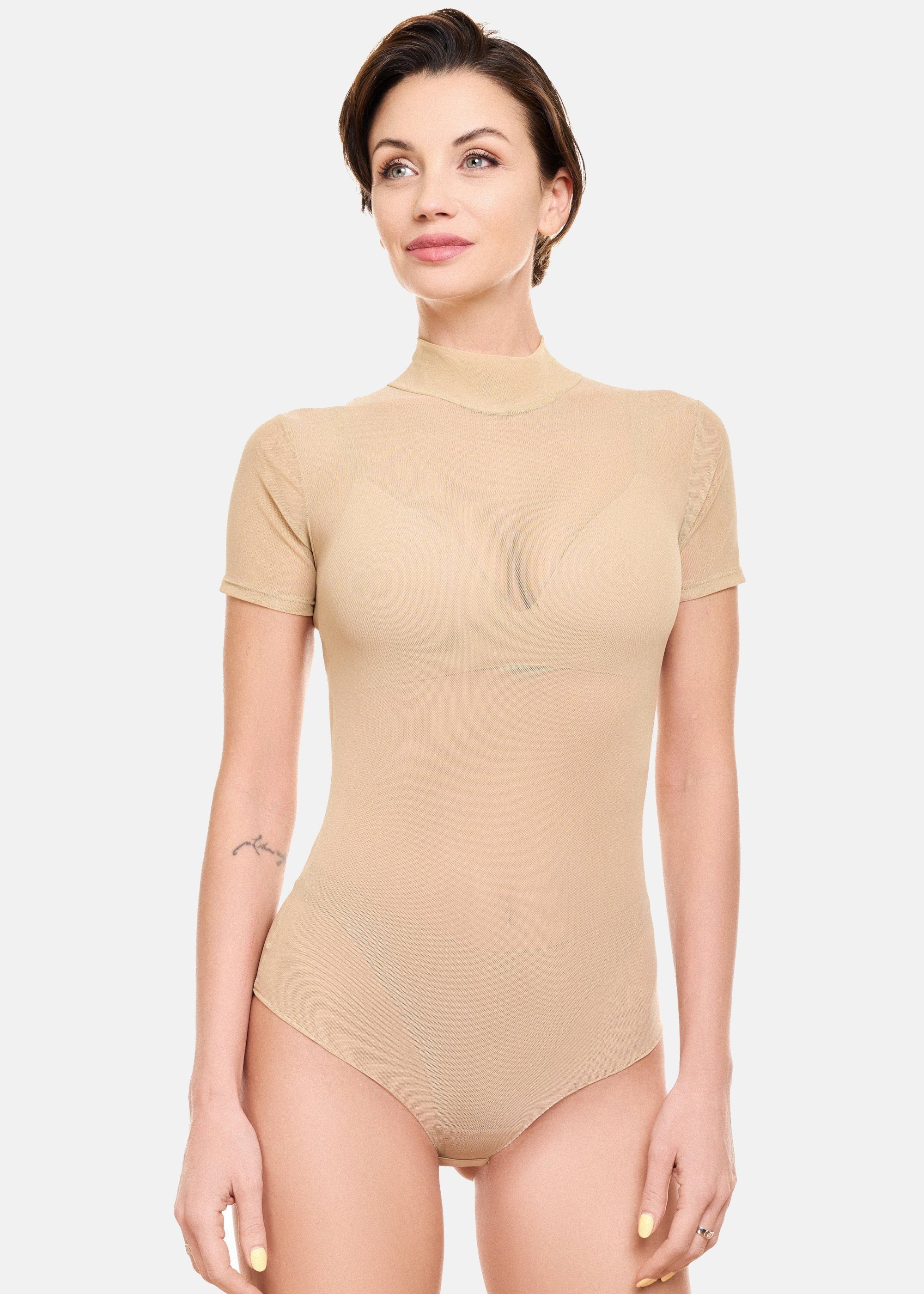 Besondere Merkmale | Damen Stringbody Halbkragen transparent Kurzarmbody |