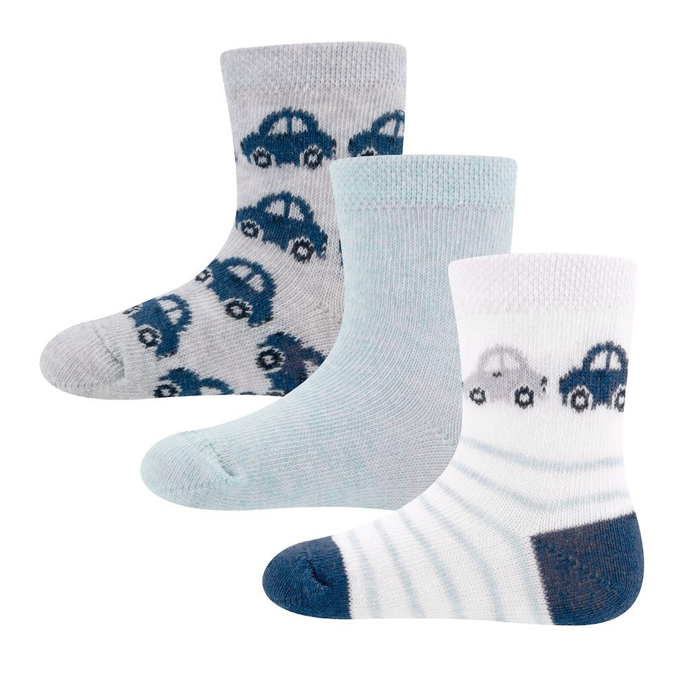 Socken Ewers Baby Jungen 3er Pack Strümpfe Auto Socken grau hellblau meliert