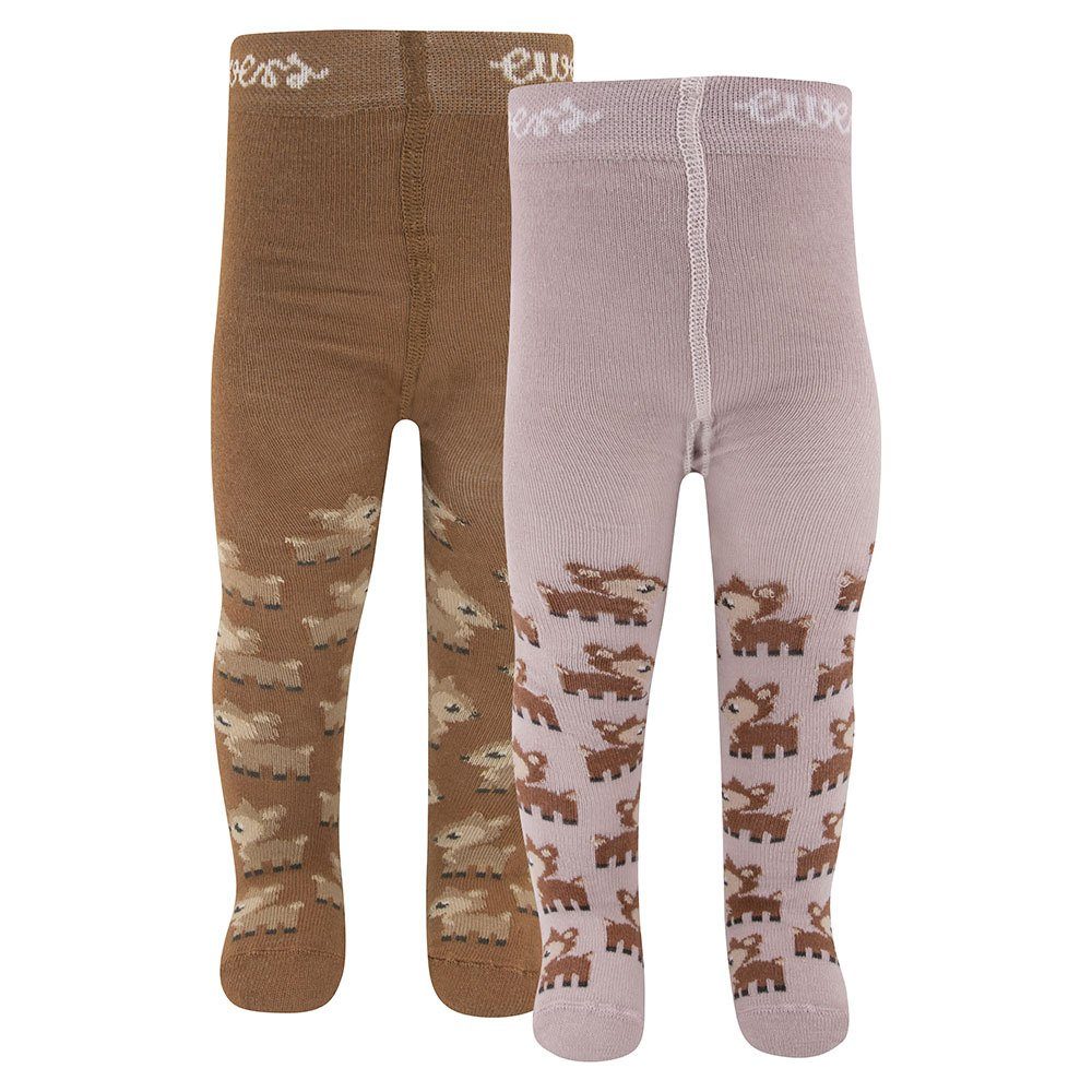 Praktisches Doppelpack Babystrumpfhose mit niedlichem Rehkitzmotiv allover und Rehkitzpomotiv