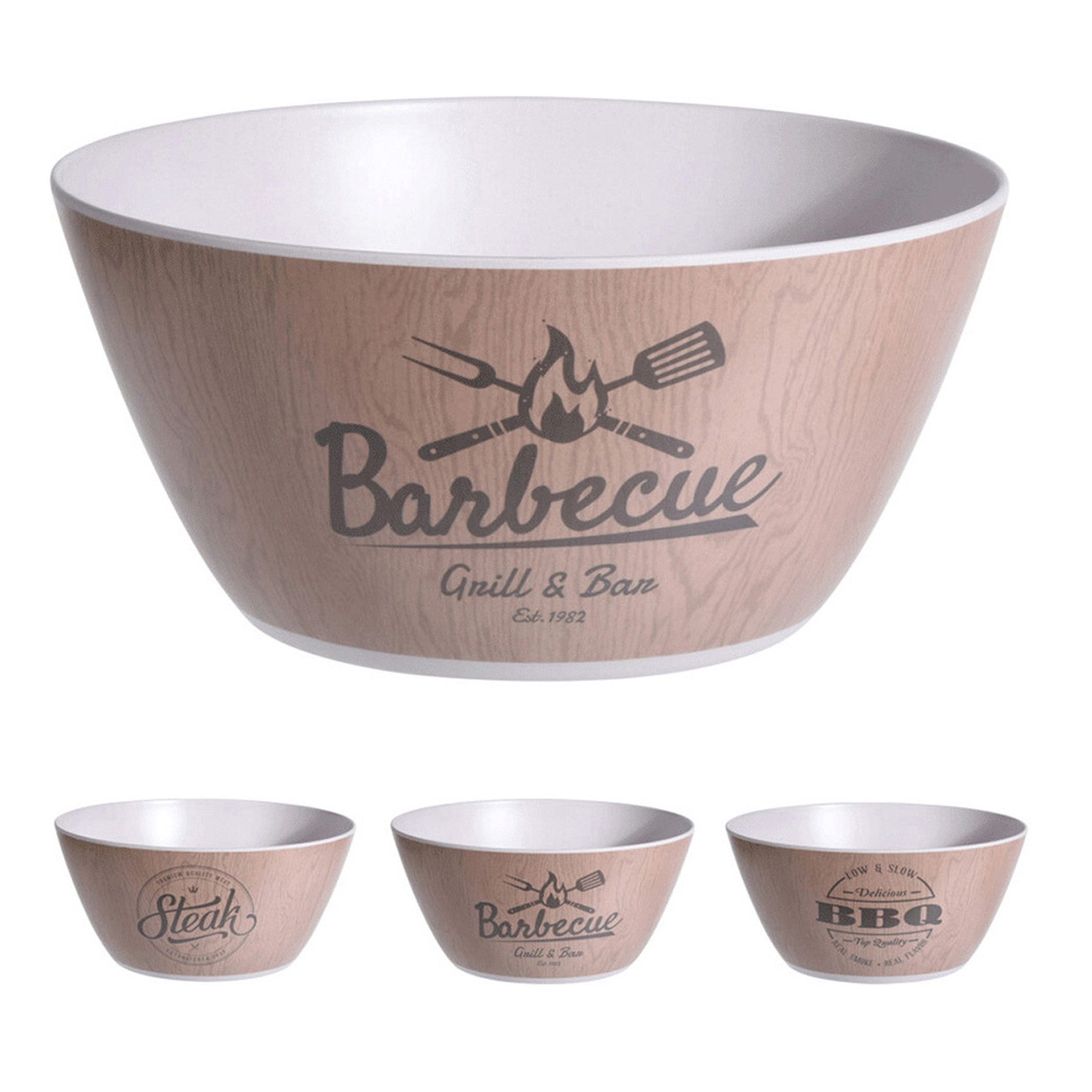 Servierschale / Kunststoffschale / Salatschüssel / Plastikschüssel Material: Kunststoff - Melamin - Durchmesser: ca. 25,5 cm - Höhe: 11,5 cm - Packungsinhalt: 1 Stück (Auslieferung nach Zufallsprinzip) - Farbe: weiß - braun - lebensmittelecht, spülmaschinengeeignet bis 70°C Genießen Sie Ihr Essen mit den strapazierfähigen Schüsseln! Diese Schale hat ausreichend Platz für Salat, Dips, Soßen, gegrilltes Gemüse, Snacks und andere Köstlichkeiten. Jede Kunststoffschüssel ist mit einem auffälligen Schriftzug - Design versehen, das zu Ihrer nächsten Grillparty, Barbecue oder Camping - Abenteuer passt. Die Servierschüssel ist nicht nur funktional, sondern auch äußerst robust und leicht zu reinigen. Sie ist sowohl lebensmittelecht als auch spülmaschinengeeignet, was sie zur idealen Wahl für den Outdoor-Gebrauch macht. Egal, ob Sie im Garten grillen, beim Camping in der Natur sind oder ein Picknick im Park veranstalten, diese Schüssel ist ein unverzichtbarer Begleiter für alle Ihre Aktivitäten. Der rustikale Stil und die schöne Holzoptik verleihen Ihrem Tisch eine warme, einladende Atmosphäre, ideal zum gemütlichen Essen im Freien. Muster & Motiv: Schriftzug, Schriftzüge, Aufschrift, beschriftet, bedruckt - Anlässe & Saison: Frühling, Sommer, Gartenparty, Grillparty, Barbecue / BBQ, Sommerparty, Camping, Picknick - Stil & Aufmachung: Landhaus, Country, Natur, Rustic / Rustik, rustikal Die Farben können aufgrund von unterschiedlichen Monitor Einstellungen vom Foto leicht abweichen