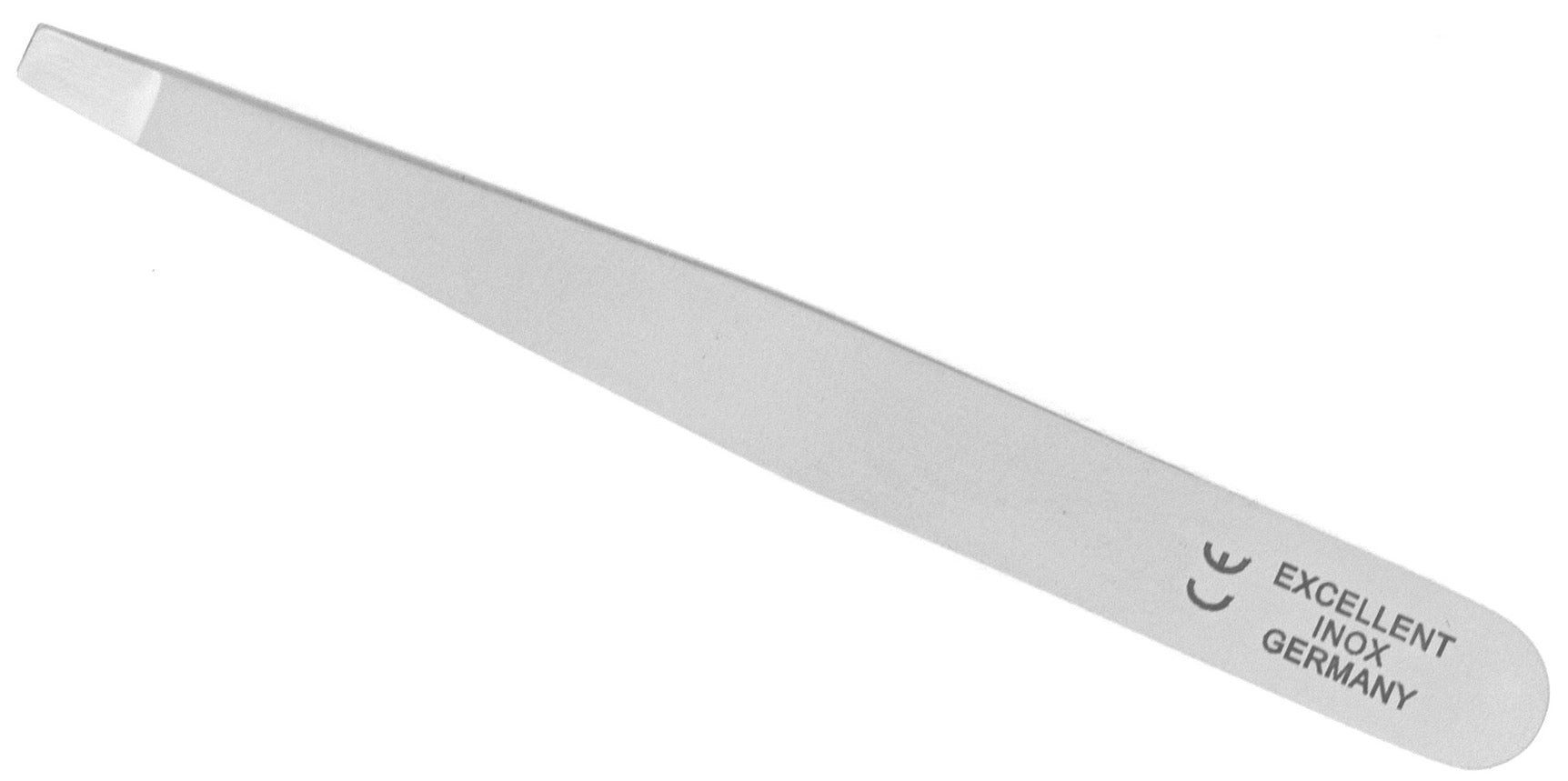 Pinzette mit einer flachen geraden Spitze und einer Длина von 9.5 cm ist ein erstklassiges Werkzeug. Diese feine, flache Pinzette verfügt über eine abgeschrägte Spitze, die sich ideal zum präzisen Zupfen von Augenbrauen oder Gesichtshaaren eignet.