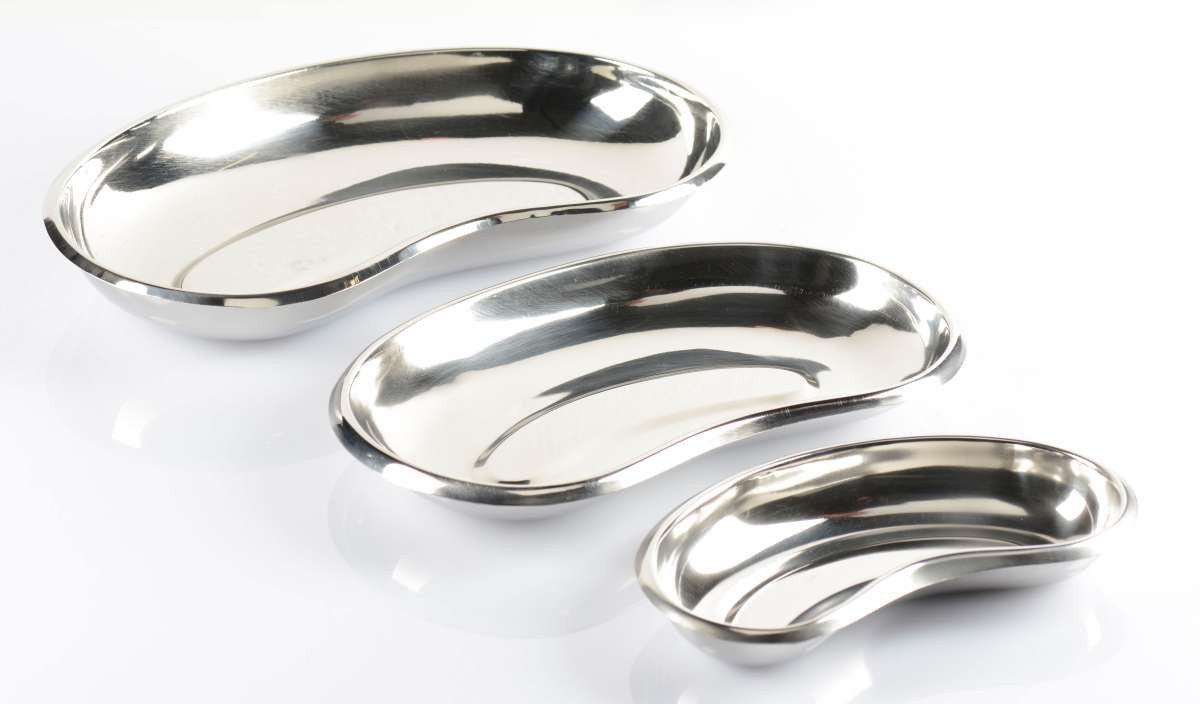 Nierenschale wird häufig als Instrumentenschale bei Operationen verwendet. Aber auch zum Ablegen benutzter Verbandsmaterialien oder Einmalhandschuhen wird die Nierenschale oft benutzt. Die Nierenschale besteht aus poliertem Edelstahl, was das Reinigen leichter und hygienischer macht. Die hohe Lippe an den Kanten kann dazu dienen, Flüssigkeiten zu schützen.