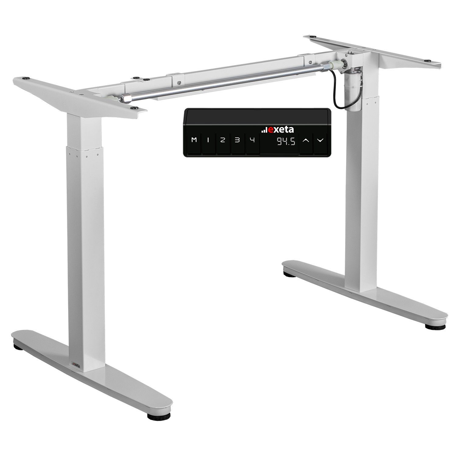 Produktdetails: Das elektrisch höhenverstellbare Tischgestell ergoEASY von exeta sticht durch hohe Stabilität, einfache Handhabung und eine flüssige und geräuscharme Höhenverstellung hervor. Das sehr stabile Gestell hat eine Tragkraft von 80 kg. Die 2-stufigen Hubsäulen sorgen für Stabilität und ermöglichen eine präzise und sichere Höhenanpassung. Der Motor gewährleistet mit seinem Überlastungs- und Überhitzungsschutz höchste Sicherheit. Der Controller mit Memory-Funktion bietet die Möglichkeit, 4 unterschiedliche Höhen zu speichern. So kann der Tisch individuell angepasst werden, um ganz bequem und mit nur einem Tastendruck zwischen unterschiedlichen Tischhöhen zu wechseln und die gewünschte Tischhöhe einzustellen. Somit kann der Tisch auch ganz komfortabel und einfach von mehreren Personen mit unterschiedlichen Körpergrößen genutzt werden. 3 Jahre Garantie auf den Motor, 5 Jahre Garantie auf das Tischgestell*