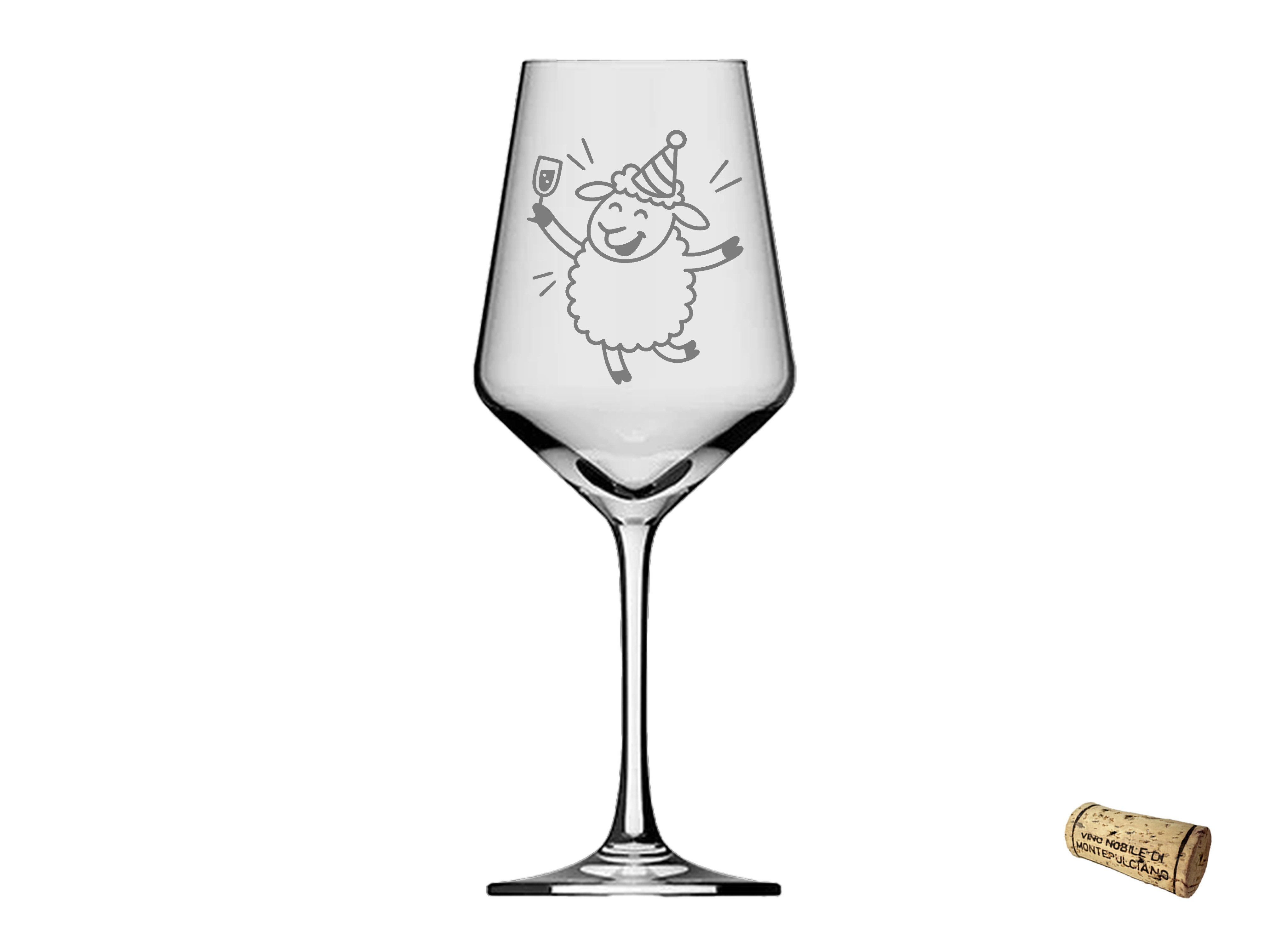 Das elegante Design umfasst eine präzise Gravur des Partyschafs, die jedem Getränk, einschließlich Weingläser, einen humorvollen Charakter verleiht