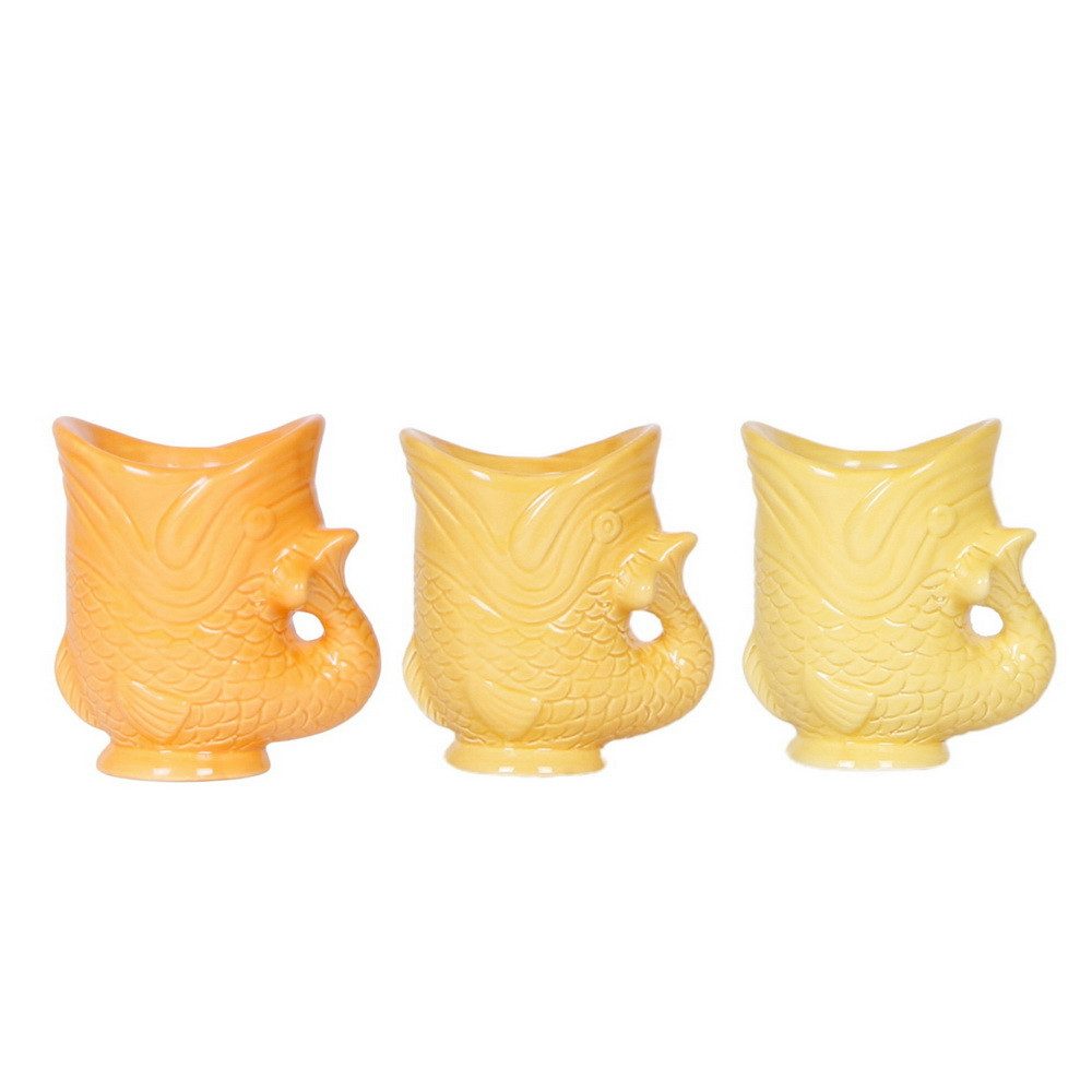 Jeder Übertopf der "Fisch"-Serie ist aus hochwertiger Keramik gefertigt und bietet eine langlebige und dekorative Möglichkeit, Ihre Pflanzen stilvoll zu präsentieren. Diese Übertöpfe sind perfekt, um jedem Raum oder Garten eine verspielte, maritime Note zu verleihen.