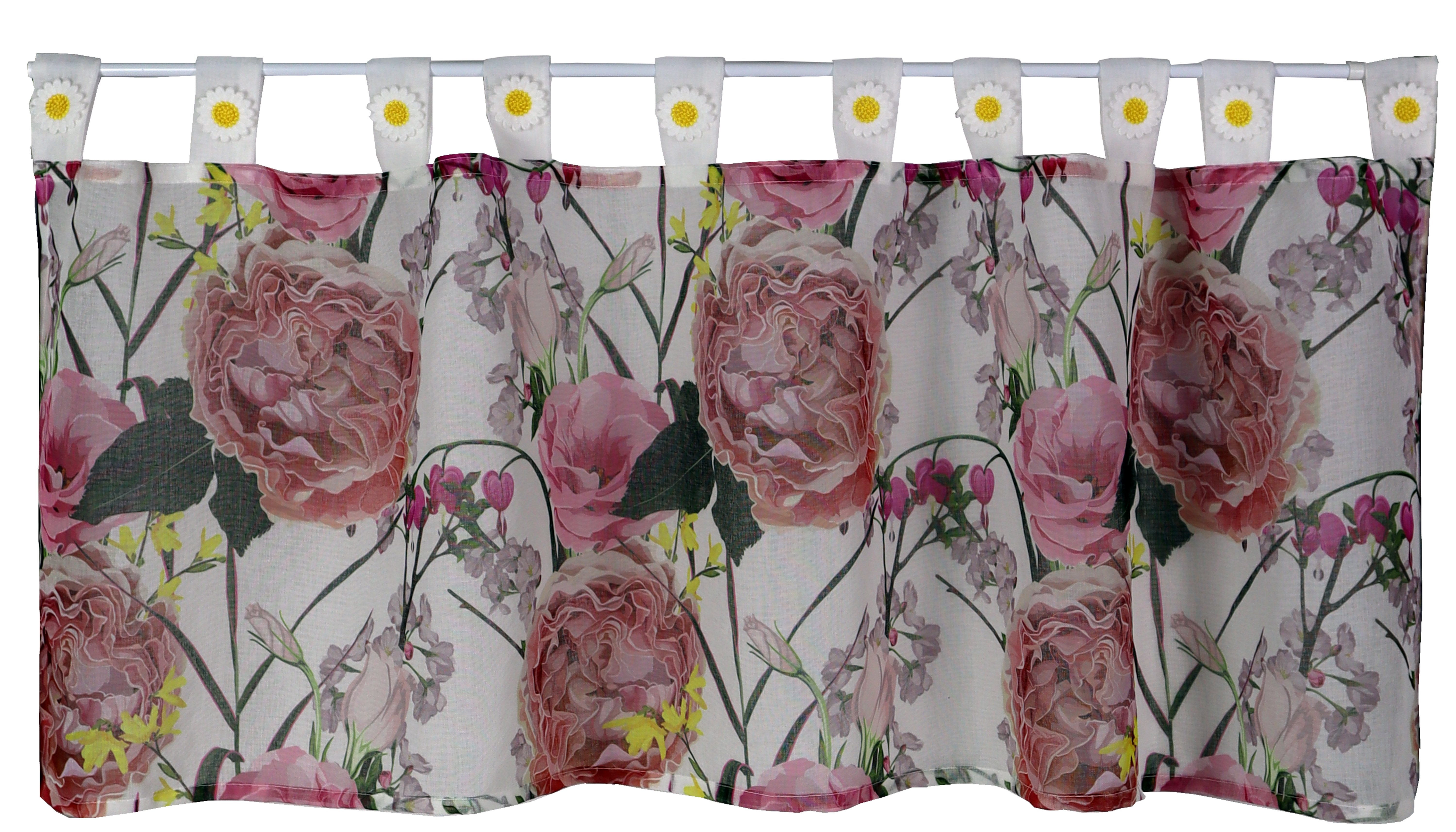 Diese Gardine ist die perfekte Wahl für alle, die eine blumige und gemütliche Fensterdekoration suchen.