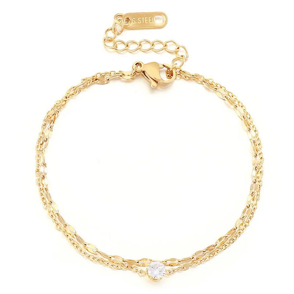 Elegante Titanstahl-Armkettchen mit Zirkonia-Edelstein - Verstellbar in Silber, Gold und Roségold - Eleganz und Vielseitigkeit.