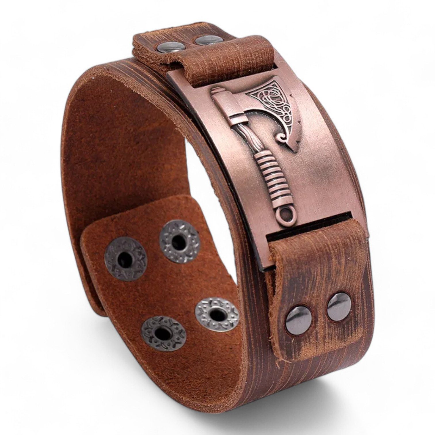 Design: Im Mittelpunkt steht eine sorgfältig gearbeitete Metall-Axt, die das zentrale Element des Wikinger-Themas bildet. Dieses Detail fügt dem Armband eine kraftvolle und mutige Ausstrahlung hinzu.