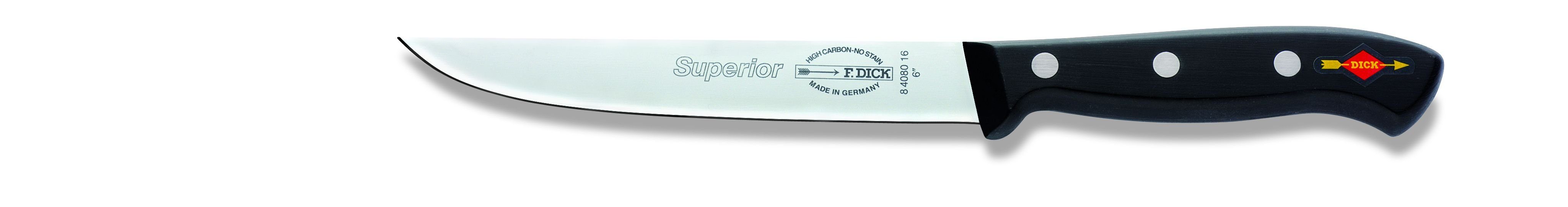 Ein Allroundtalent in der Küche ist das Küchmesser aus der Serie Superior. Die 16 cm lange Klinge meistert problemlos kleinere Schneidearbeiten und ist vielseitig einsetzbar. Perfekt zum Schneiden von Pilzen, Zwiebeln aber auch kleinem Obst wie Beeren oder kleine Zitrusfrüchte. Die Superior Serie ist für den Einsatz im professionellen Bereich konzipiert. Klassisches Design mit Griffnieten und die leichte Ausführung ergeben ein Messer in morderner Form und Funktion. Klinge und Griff sind ohne Spalt fest miteinander verbunden, dank dem durchgehenden Stahl bis zum Griffende wird eine hohe Stabilität erreicht. Das Nachschärfen der gesamten Schneide ist möglich. Klinge ist aus X55CrMo14 Stahl. Die ausgewogene Härte von 56° HRC ist der ideale Kompromiss für perfekte Schnitthaltigkeit und leichtes Nachschärfen. Made in Germany.