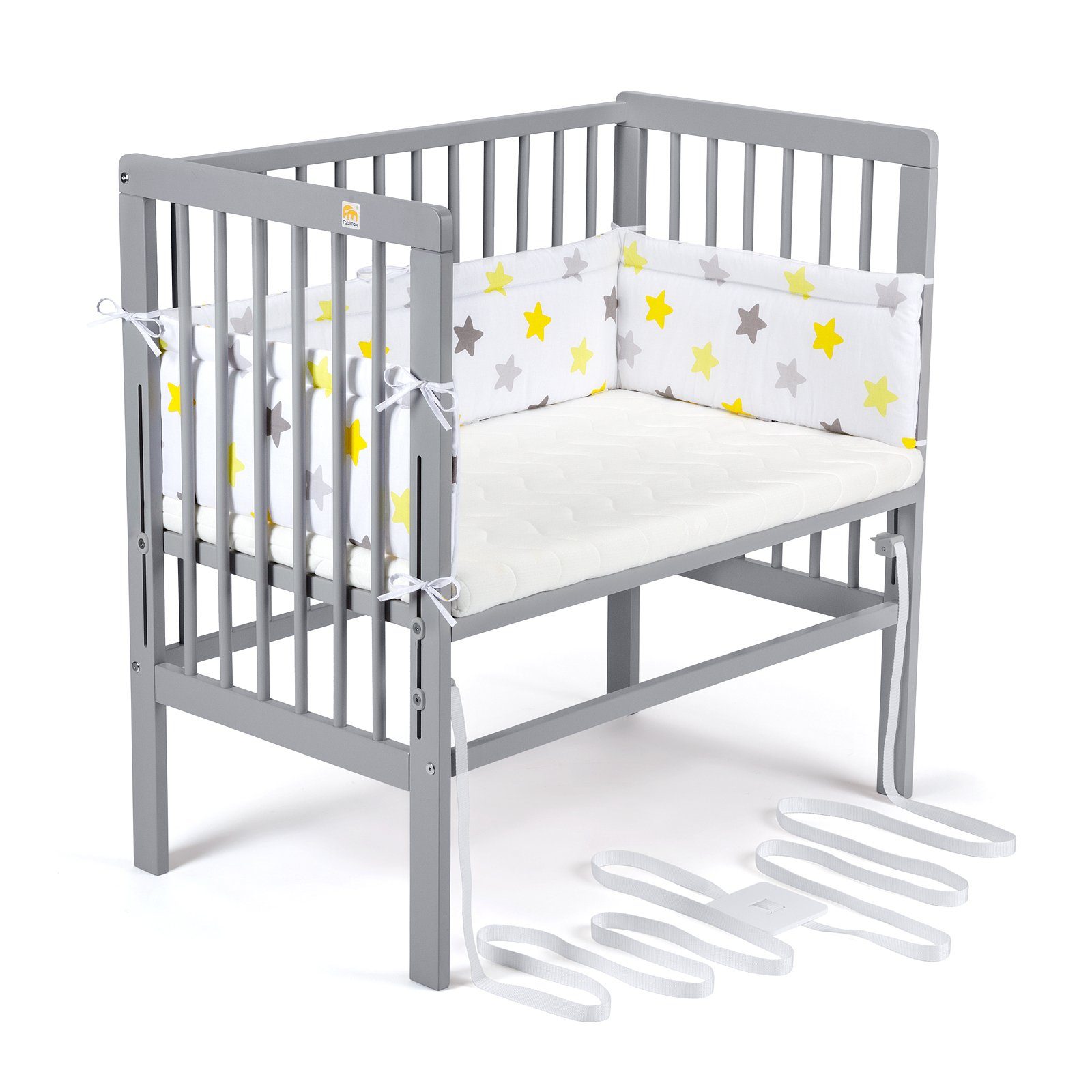 FabiMax ist ein Familienbetrieb mit 20 Jahren Erfahrung und steht für Qualität und Vertrauen. Das Beistellbett ist aus massivem Buchenholz gefertigt und überzeugt durch seine Langlebigkeit und Sicherheit. Die verwendeten Lacke sind speichelfest, die Oberfläche ist grau lackiert.